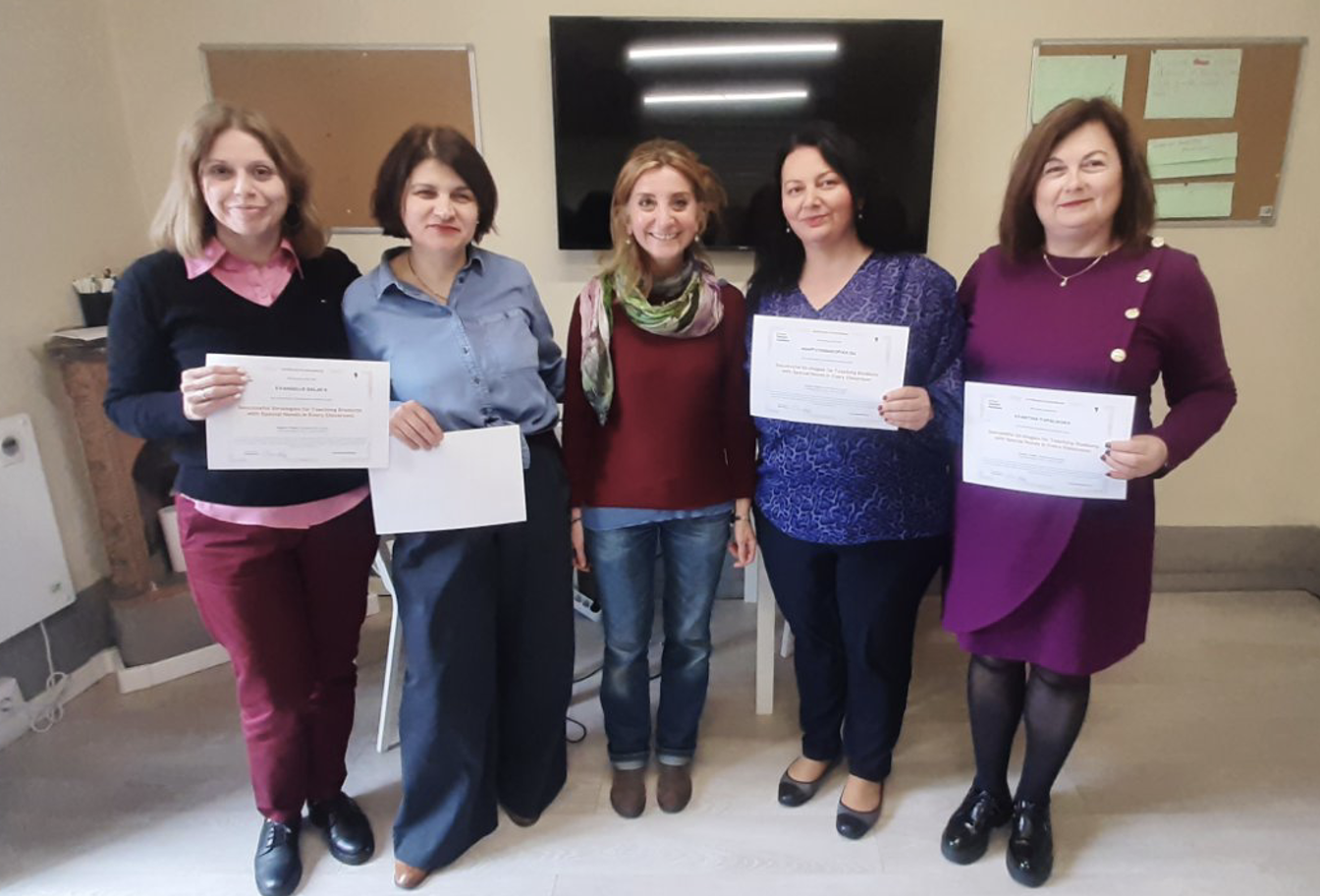 Μέσω ατομικών και ομαδικών δραστηριοτήτων οι εκπαιδευτικοί γνώρισαν στρατηγικές και τεχνικές διδασκαλίας μαθητών που ανήκουν στο Φάσμα του Αυτισμού, μαθητών με Διαταραχή Ελλειμματικής Προσοχής/ Υπερκινητικότητας (ADHD ) και μαθητών με Σύνδρομο Down. Κατά τη διάρκεια της επιμόρφωσης, οι εκπαιδευτικοί είχαν τη δυνατότητα να ανταλλάξουν απόψεις και τεχνικές με εκπαιδευτικούς χωρών από τη Γερμανία και τη Ρουμανία που διδάσκουν τόσο στην Ειδική αγωγή όσο και στην τυπική εκπαίδευση και να ενημερωθούν για τα αντίστοιχα εκπαιδευτικά συστήματα. O βιωματικός χαρακτήρας της επιμόρφωσης, η άψογη οργάνωση, η προσέγγιση της εκπαιδεύτριας σε συνδυασμό με την ανταλλαγή εμπειριών με τους εκπαιδευτικούς των άλλων ευρωπαϊκών χωρών, είχε ως αποτέλεσμα τον εμπλουτισμό των γνώσεων, μεθόδων και στρατηγικών που θα αξιοποιηθούν στην τάξη.