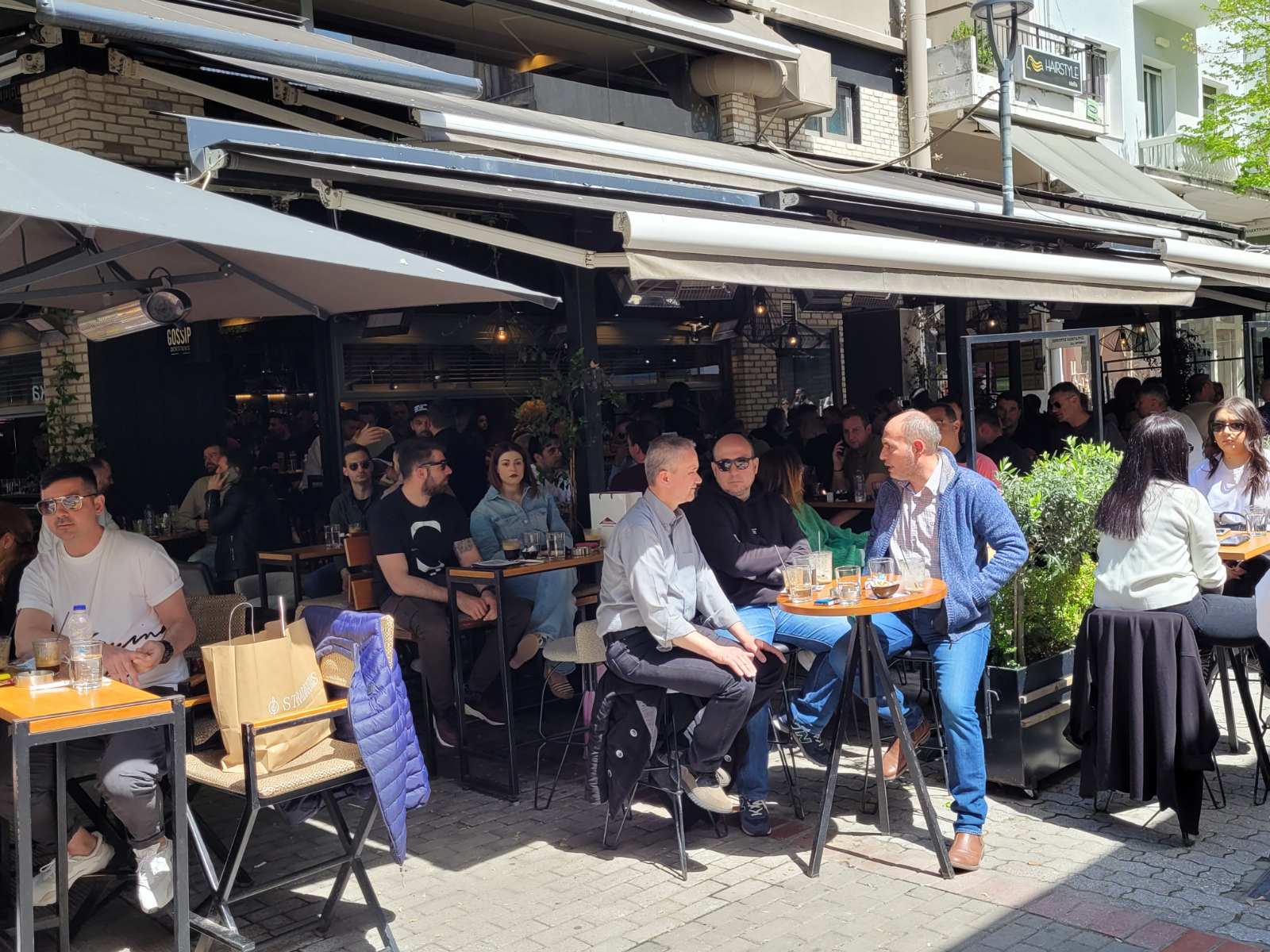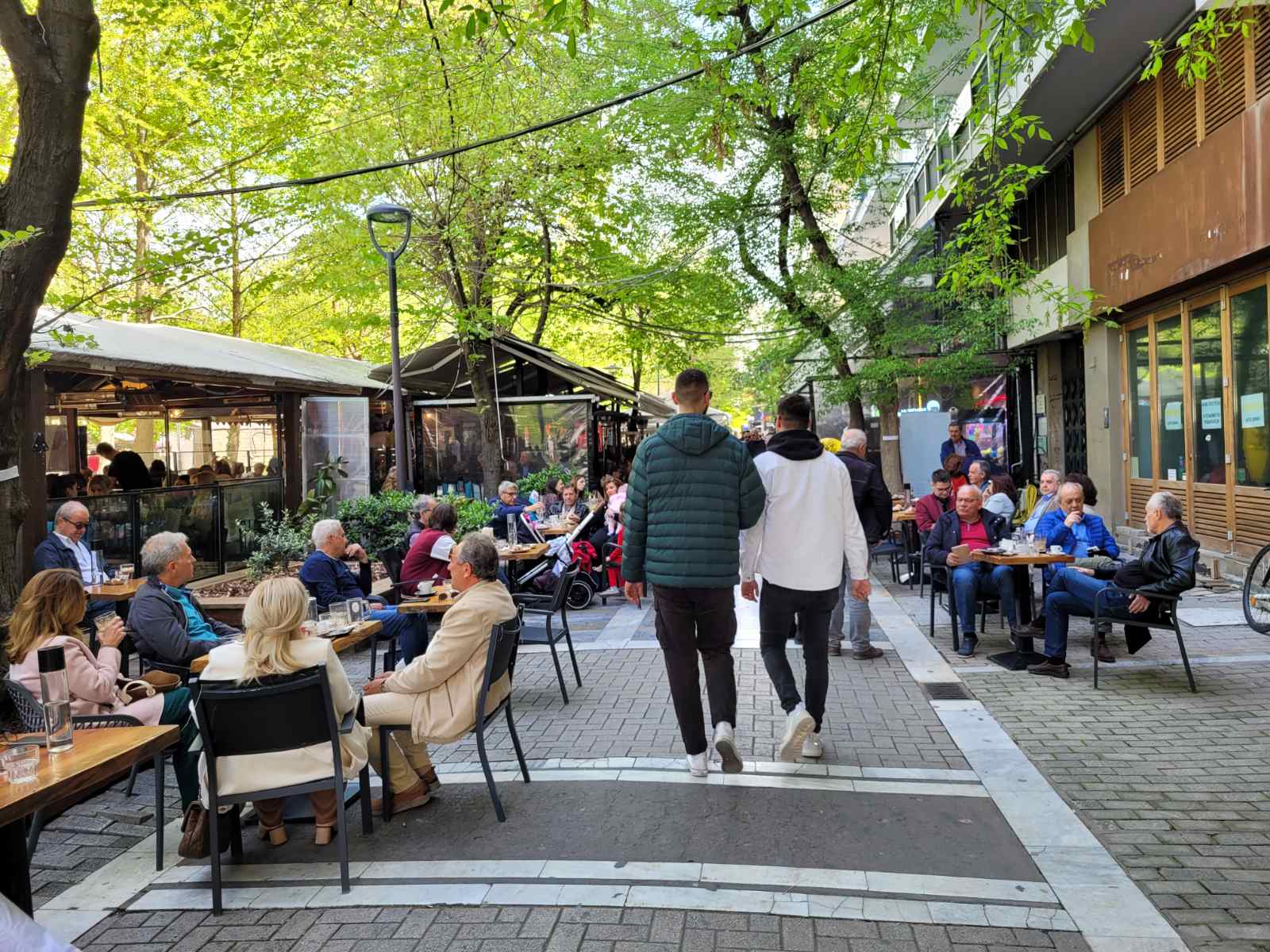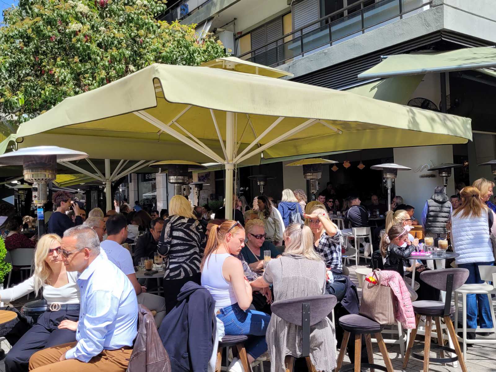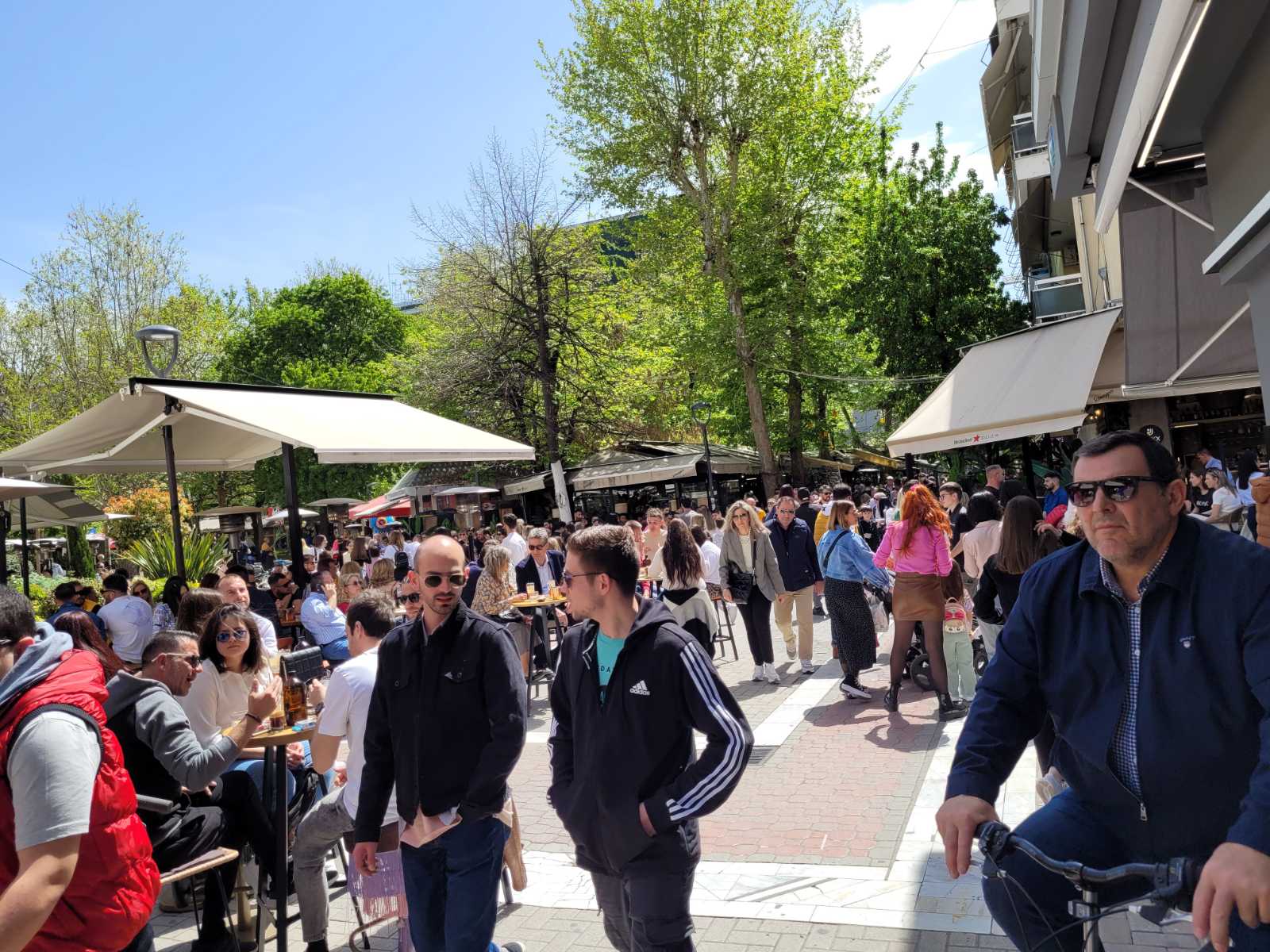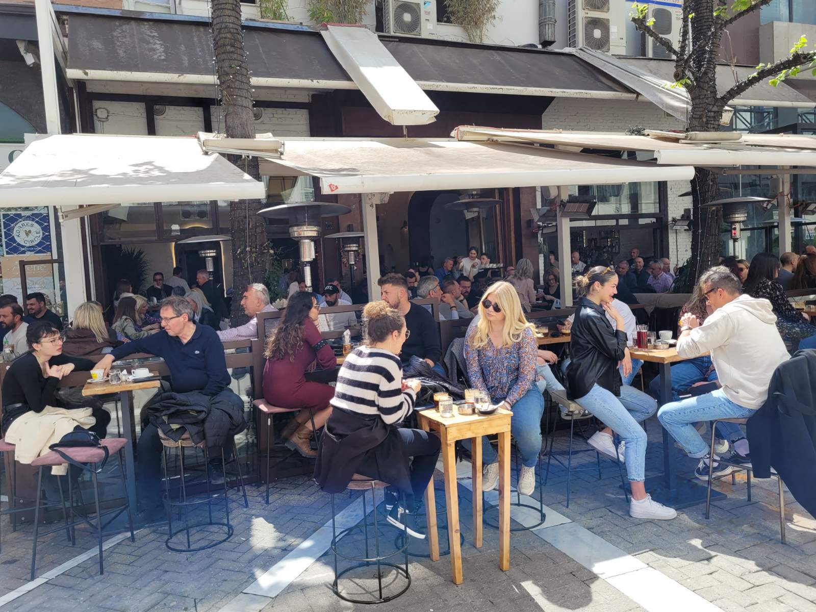 Κοσμοσυρροή και στα κεντρικά cafe της πόλης, με τους Λαρισαίους να έχουν σύμμαχο τον καλό καιρό και να απολαμβάνουν τον καφέ τους με τις παρέες τους.