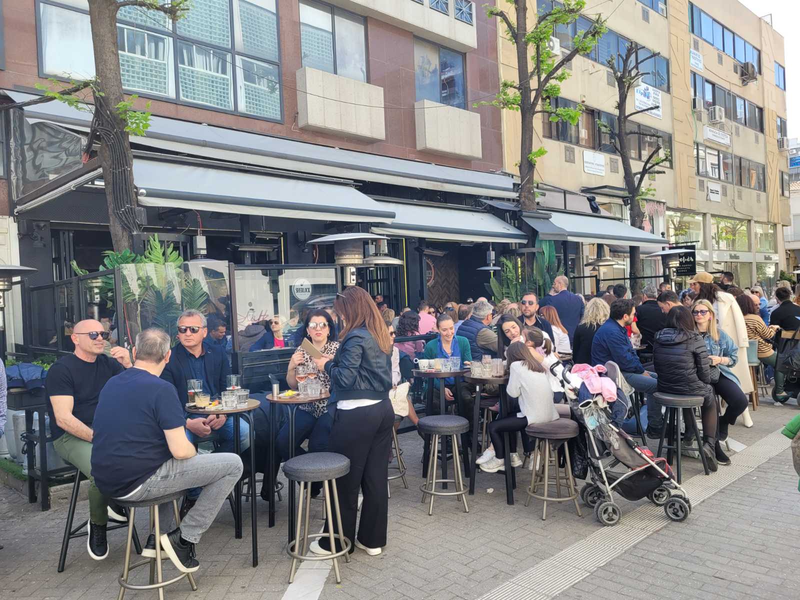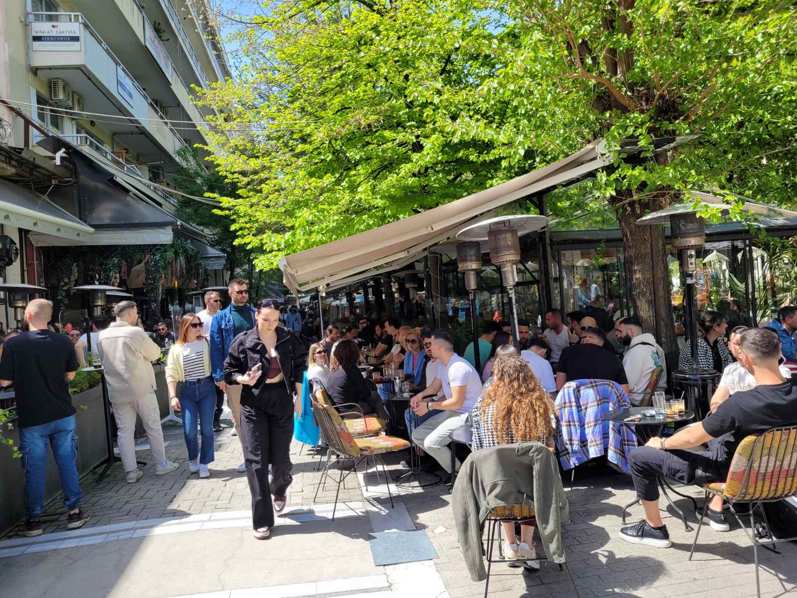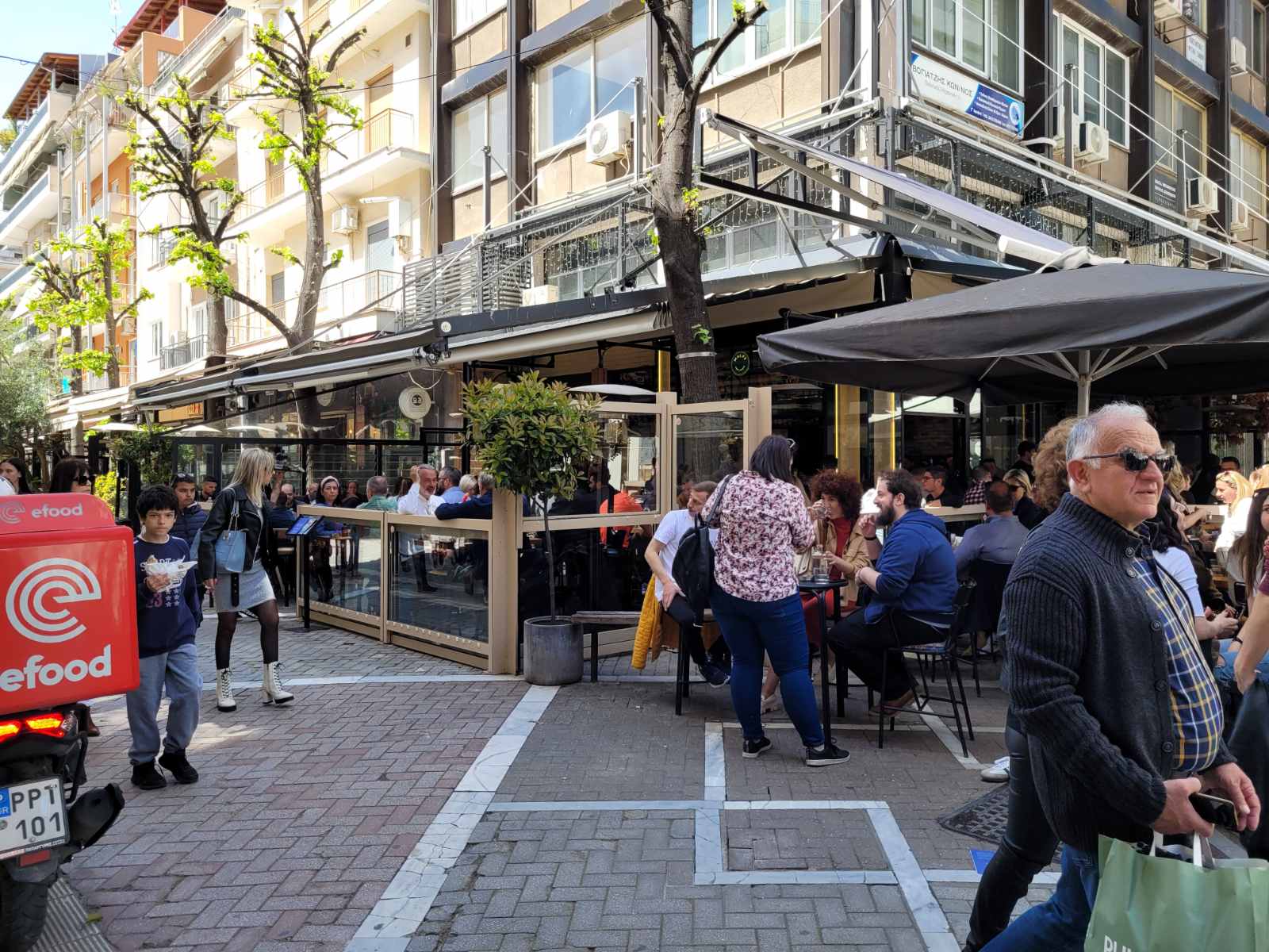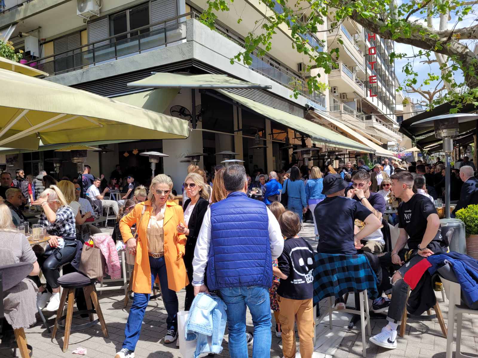 Κοσμοσυρροή και στα κεντρικά cafe της πόλης, με τους Λαρισαίους να έχουν σύμμαχο τον καλό καιρό και να απολαμβάνουν τον καφέ τους με τις παρέες τους.