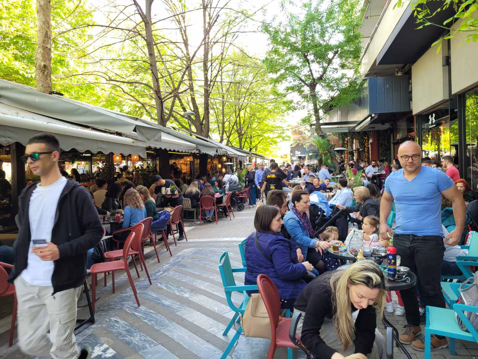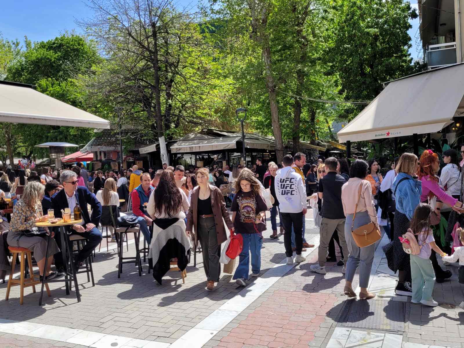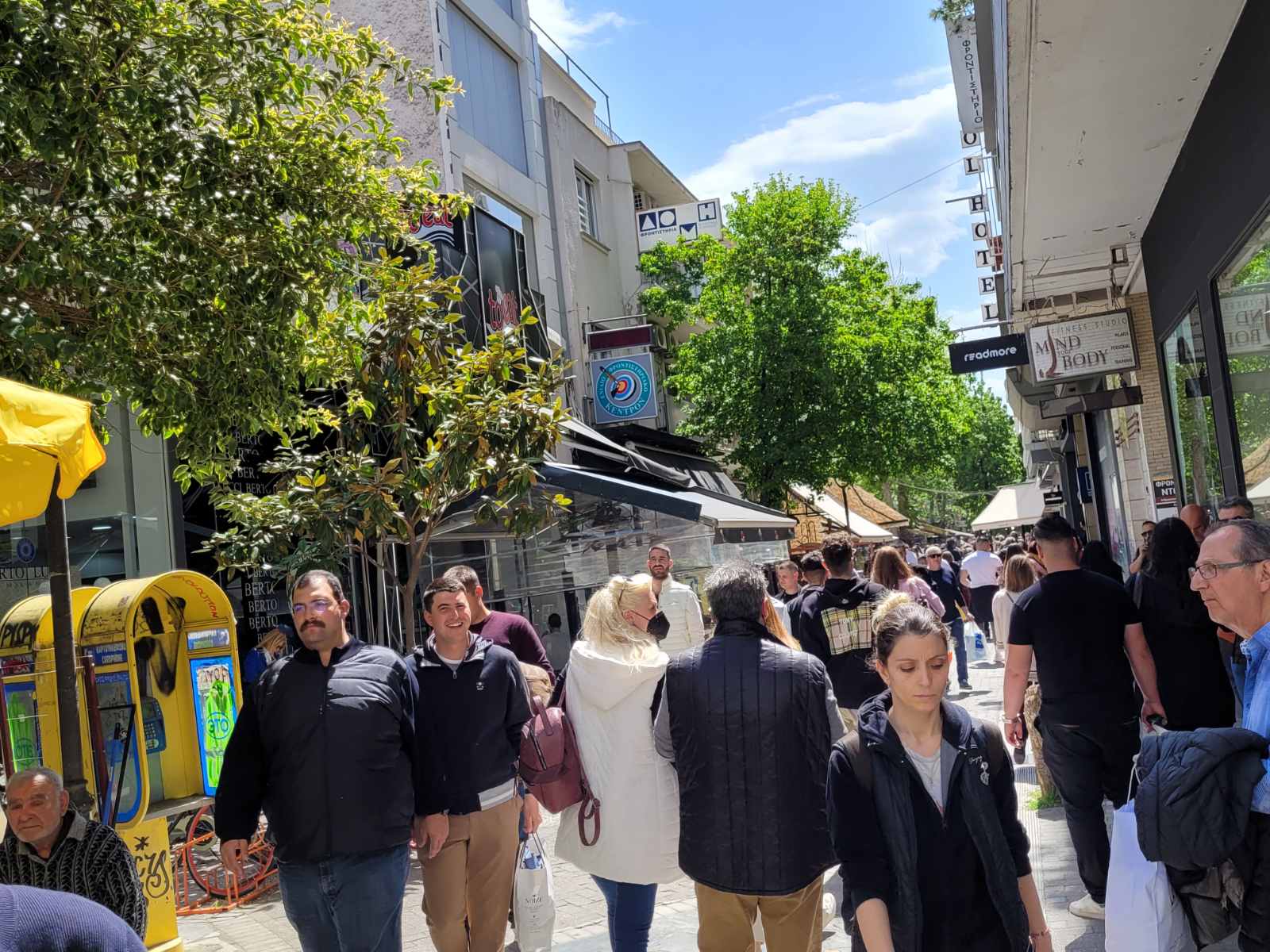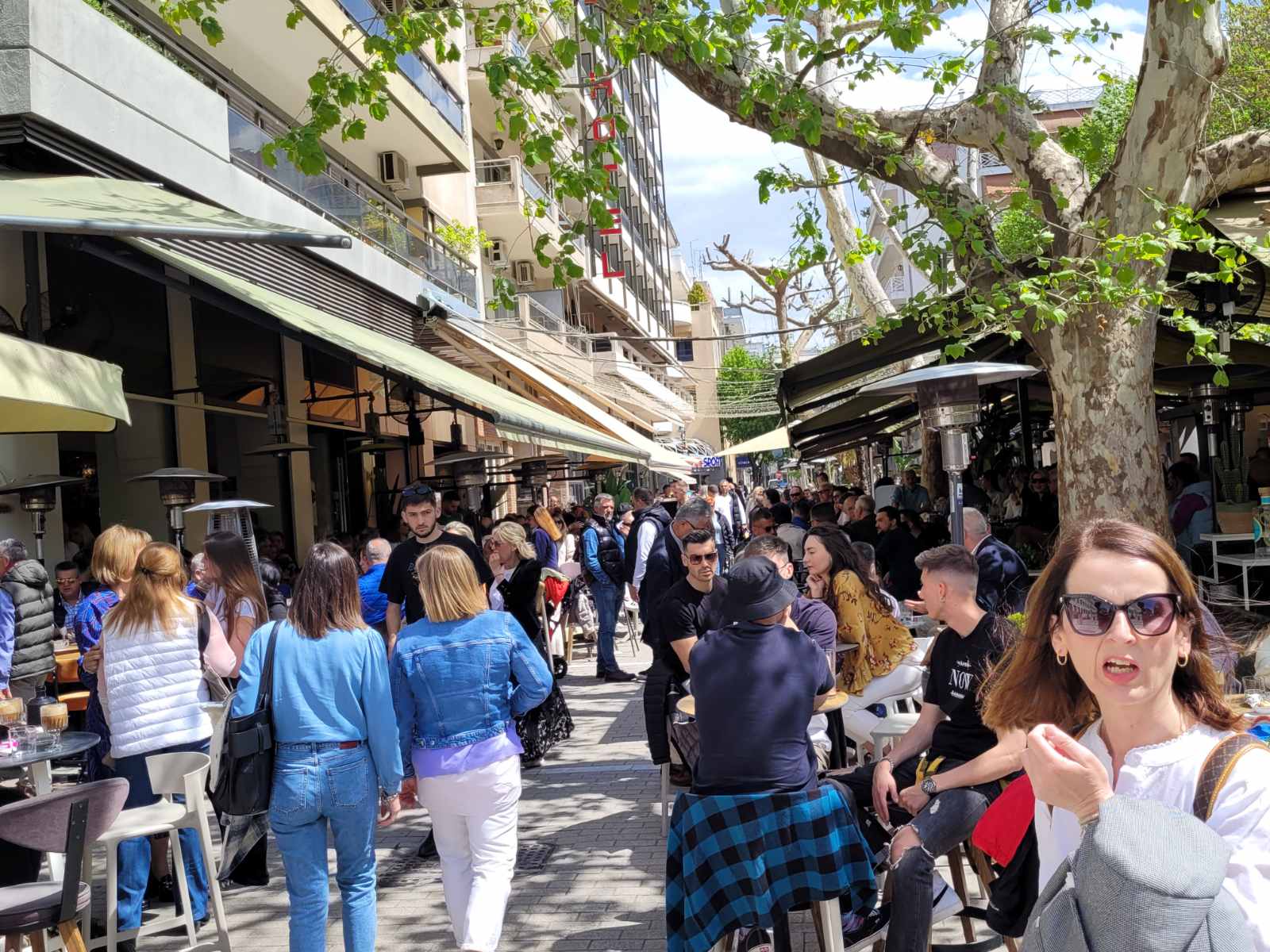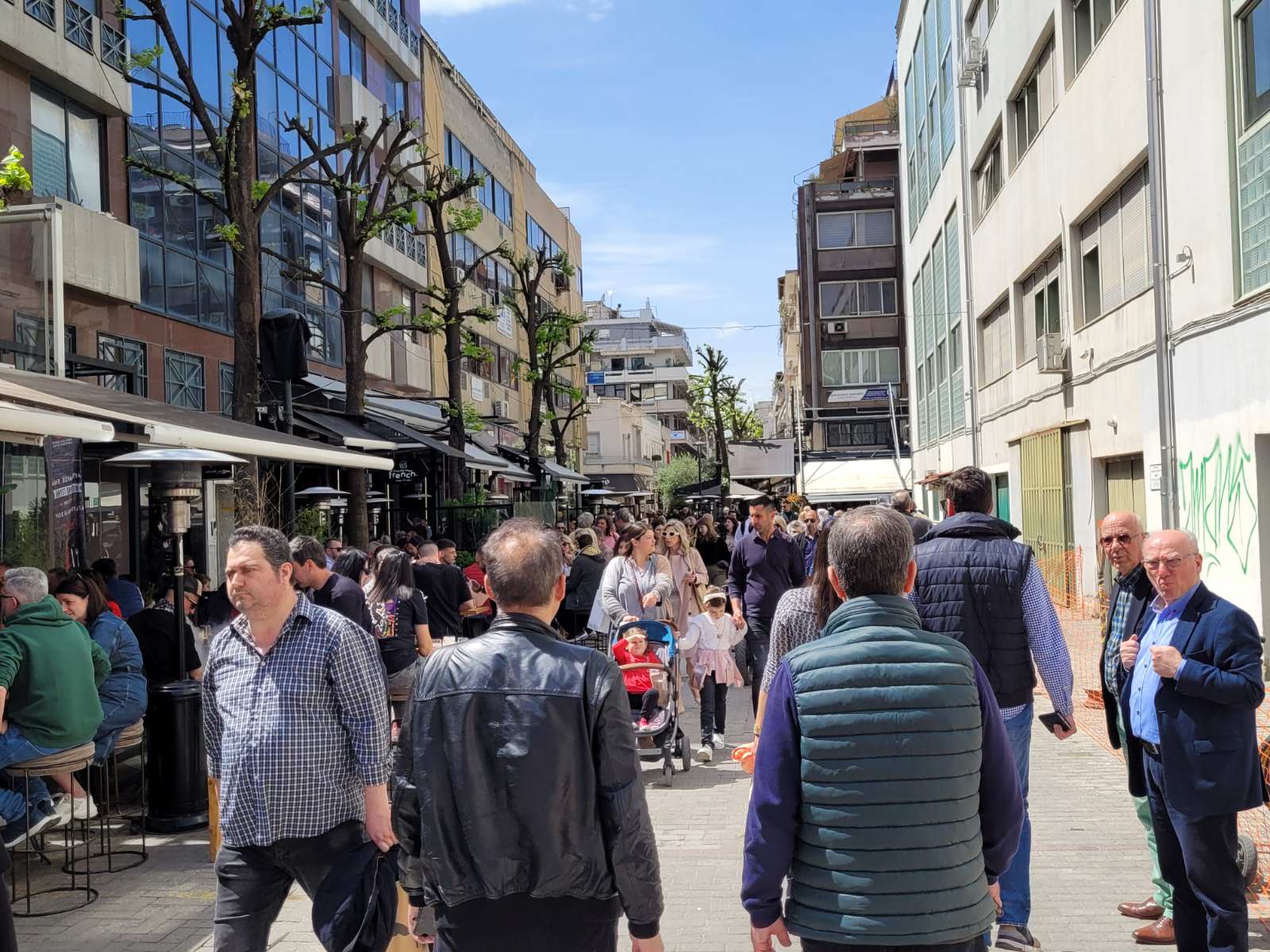 Κοσμοσυρροή και στα κεντρικά cafe της πόλης, με τους Λαρισαίους να έχουν σύμμαχο τον καλό καιρό και να απολαμβάνουν τον καφέ τους με τις παρέες τους.