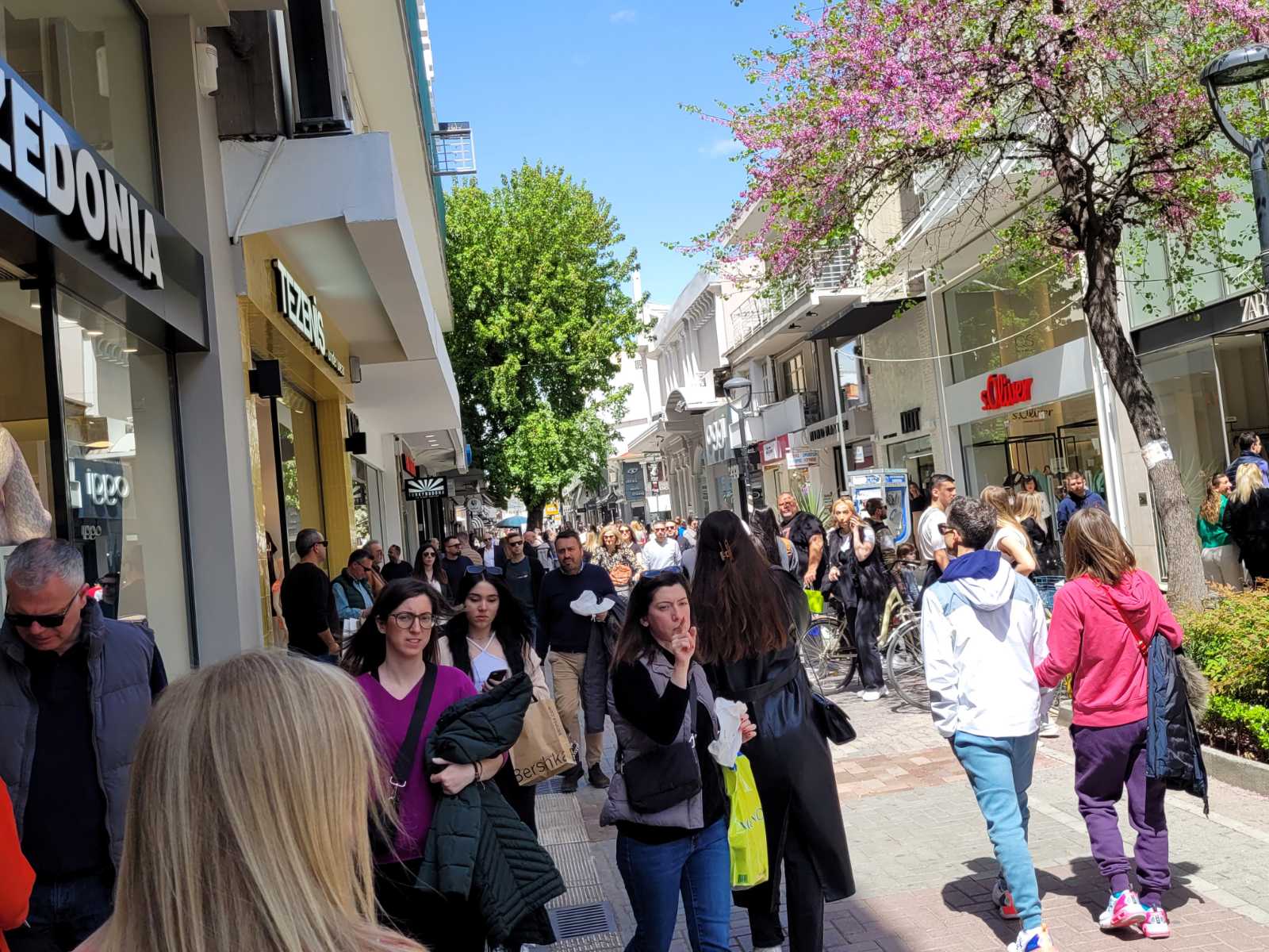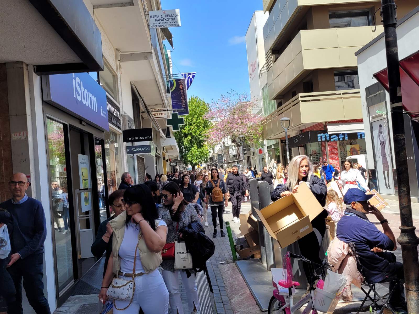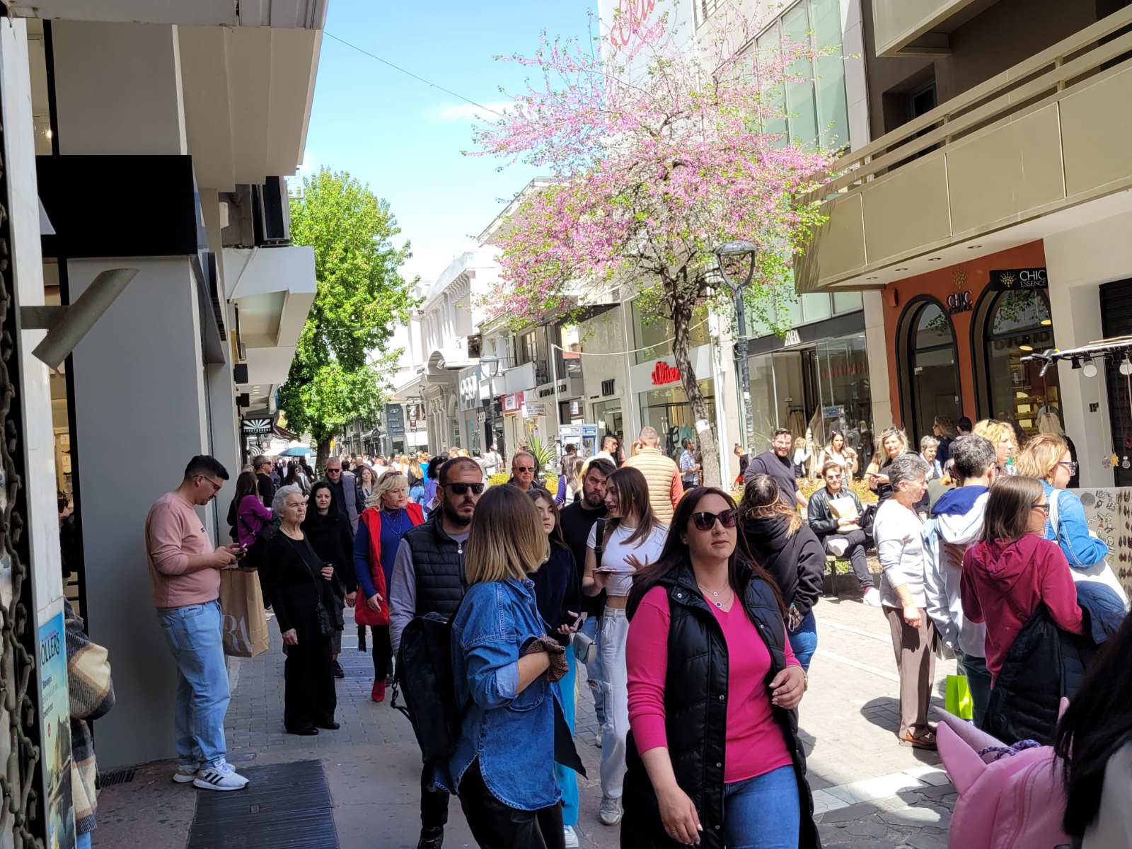 Με το άνοιγμα των εμπορικών καταστημάτων στη 1 μ.μ. τα οποία θα είναι ανοιχτά σήμερα έως τις 7 το απόγευμα, οι πεζόδρομοι «πλημμύρισαν» με κόσμο, καθώς οι καταναλωτές τρέχουν για τα τελευταία ψώνια πριν την Ανάσταση.