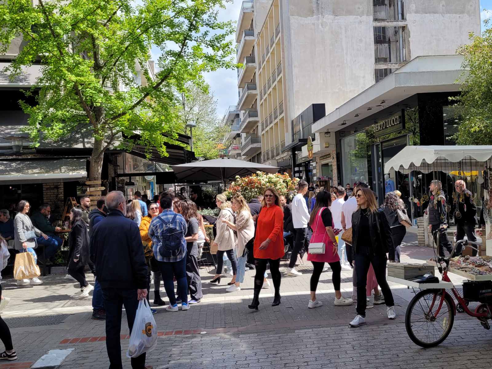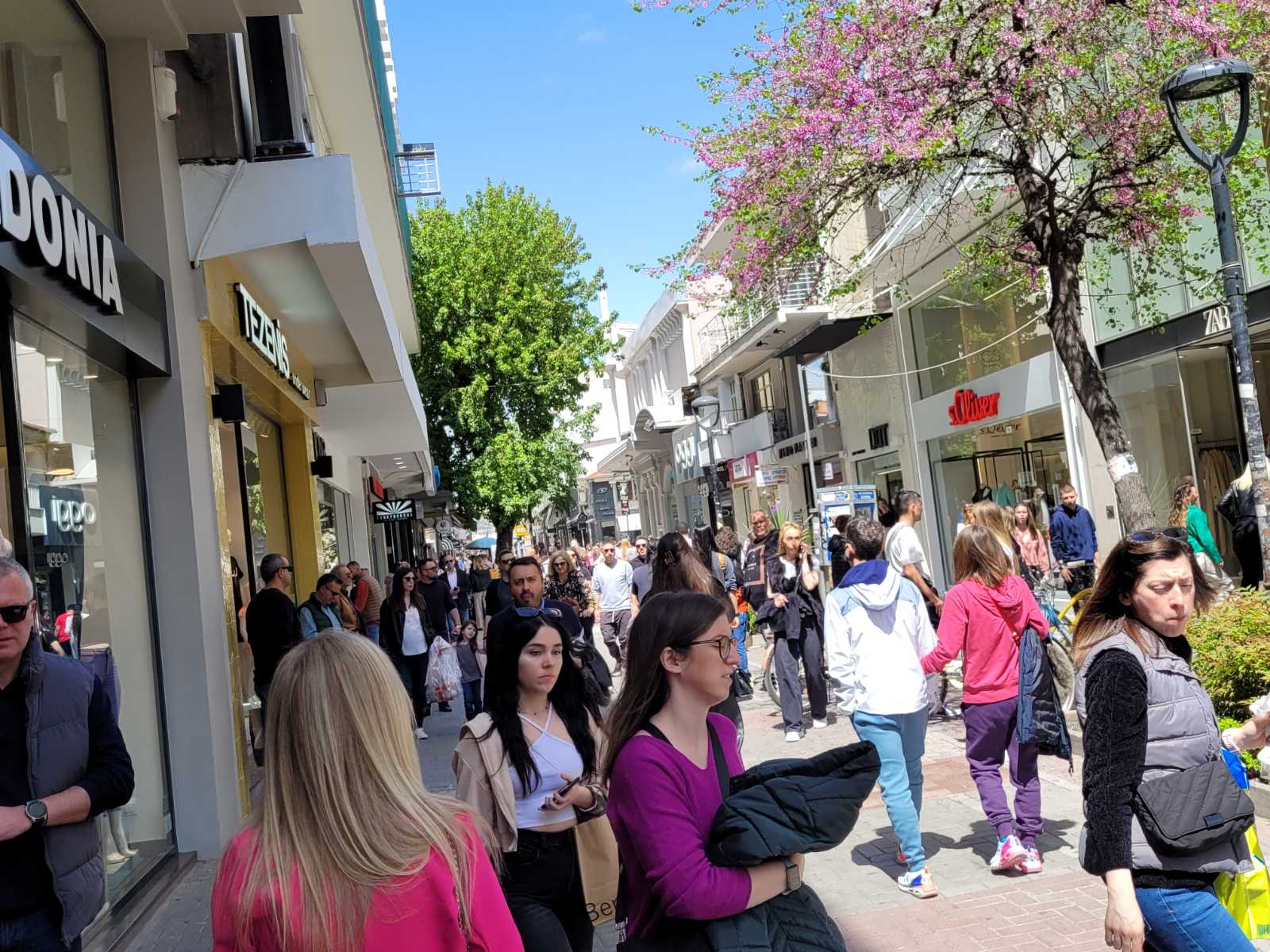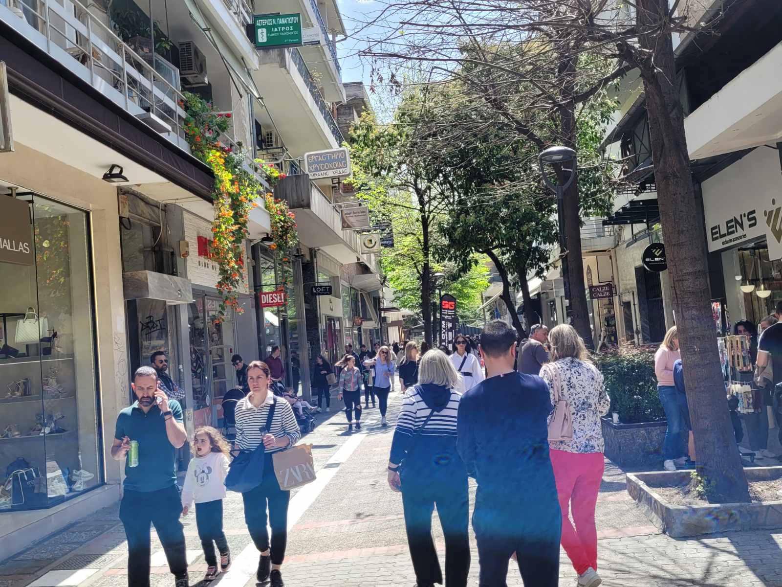Με το άνοιγμα των εμπορικών καταστημάτων στη 1 μ.μ. τα οποία θα είναι ανοιχτά σήμερα έως τις 7 το απόγευμα, οι πεζόδρομοι «πλημμύρισαν» με κόσμο, καθώς οι καταναλωτές τρέχουν για τα τελευταία ψώνια πριν την Ανάσταση.
