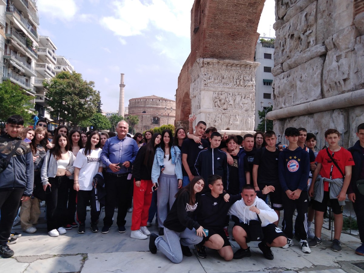 Η Β’ Γυμνασίου είχε τον δικό της προορισμό. Τράβηξε προς βορρά και επισκέφθηκε την πόλη της Θεσσαλονίκης. Περπάτησε στα Βυζαντινά μονοπάτια της πόλης, επισκέφτηκε τον Άγιο Δημήτριο, τις κατακόμβες, την Ροτόντα, τον Λευκό Πύργο και τέλος το Πολεμικό Μουσείο της Θεσσαλονίκης. Οι μαθητές/τριες και η εκπαιδευτικοί απόλαυσαν το πανέμορφο δειλινό στον Πλαταμώνα στην τελευταία στάση κατά την επιστροφή. Συνοδοί καθηγητές, οι: κ. Τσιουραντανη Βασίλη, η κ. Μπελιά Παρασκευή, η κ. Ντάκου Κερασία, η κ. Τσολάκη Φωτεινή, η κ. Αμπελαργά Λαμπρινή και η κ. Χατζηαβραάμ Αγγελική.