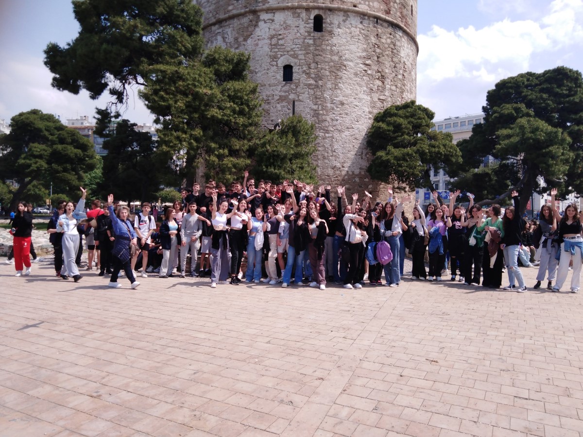 Η Β’ Γυμνασίου είχε τον δικό της προορισμό. Τράβηξε προς βορρά και επισκέφθηκε την πόλη της Θεσσαλονίκης. Περπάτησε στα Βυζαντινά μονοπάτια της πόλης, επισκέφτηκε τον Άγιο Δημήτριο, τις κατακόμβες, την Ροτόντα, τον Λευκό Πύργο και τέλος το Πολεμικό Μουσείο της Θεσσαλονίκης. Οι μαθητές/τριες και η εκπαιδευτικοί απόλαυσαν το πανέμορφο δειλινό στον Πλαταμώνα στην τελευταία στάση κατά την επιστροφή. Συνοδοί καθηγητές, οι: κ. Τσιουραντανη Βασίλη, η κ. Μπελιά Παρασκευή, η κ. Ντάκου Κερασία, η κ. Τσολάκη Φωτεινή, η κ. Αμπελαργά Λαμπρινή και η κ. Χατζηαβραάμ Αγγελική.