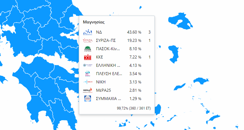 Παντοκρατορία της ΝΔ στους Δήμους της Μαγνησίας – Δείτε αναλυτικά τα ποσοστά των κομμάτων