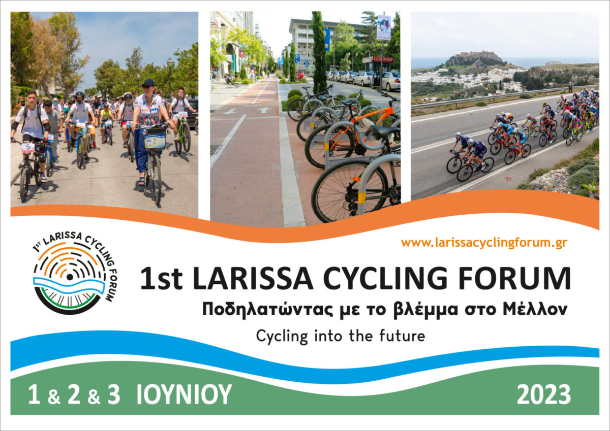 Το 1st Larissa Cycling Forum, με τίτλο «Ποδηλατώντας με το βλέμμα στο Μέλλον» ξεκινάει την ερχόμενη Πέμπτη 1η Ιουνίου, θα διαρκέσει μέχρι και το Σάββατο 3 Ιουνίου, ενώ βασικοί διοργανωτές είναι ο Δήμος Λαρισαίων η ΚΕΔΕ η Ελληνική Ομοσπονδία Ποδηλασίας, η ΔΗΚΕΛ και η Επιτροπή Ανάπτυξης της ΕΟΠ. Το Συνέδριο τελεί υπο την αιγίδα του Υπουργείου Υποδομών και Μεταφορών, του Υπουργείου Περιβάλλοντος, του Υπουργείου Τουρισμού, της Περιφέρειας Θεσσαλίας, της ΠΕΔ Θεσσαλίας, ενώ επίσημος χορηγός του Συνεδρίου είναι η Cosmote.
