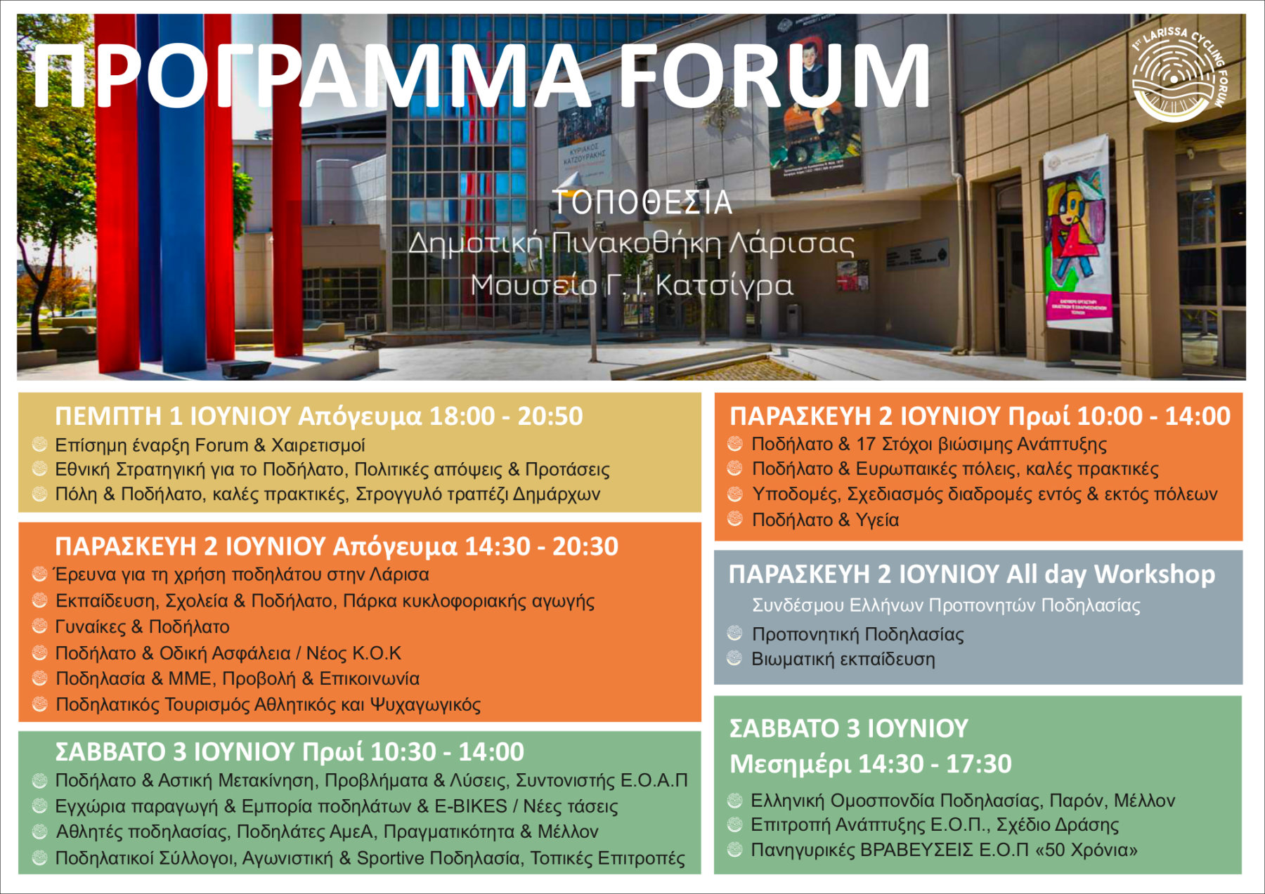 Το πλήρες πρόγραμμα και πληροφορίες για το Συνέδριο στο https://larissacyclingforum.gr