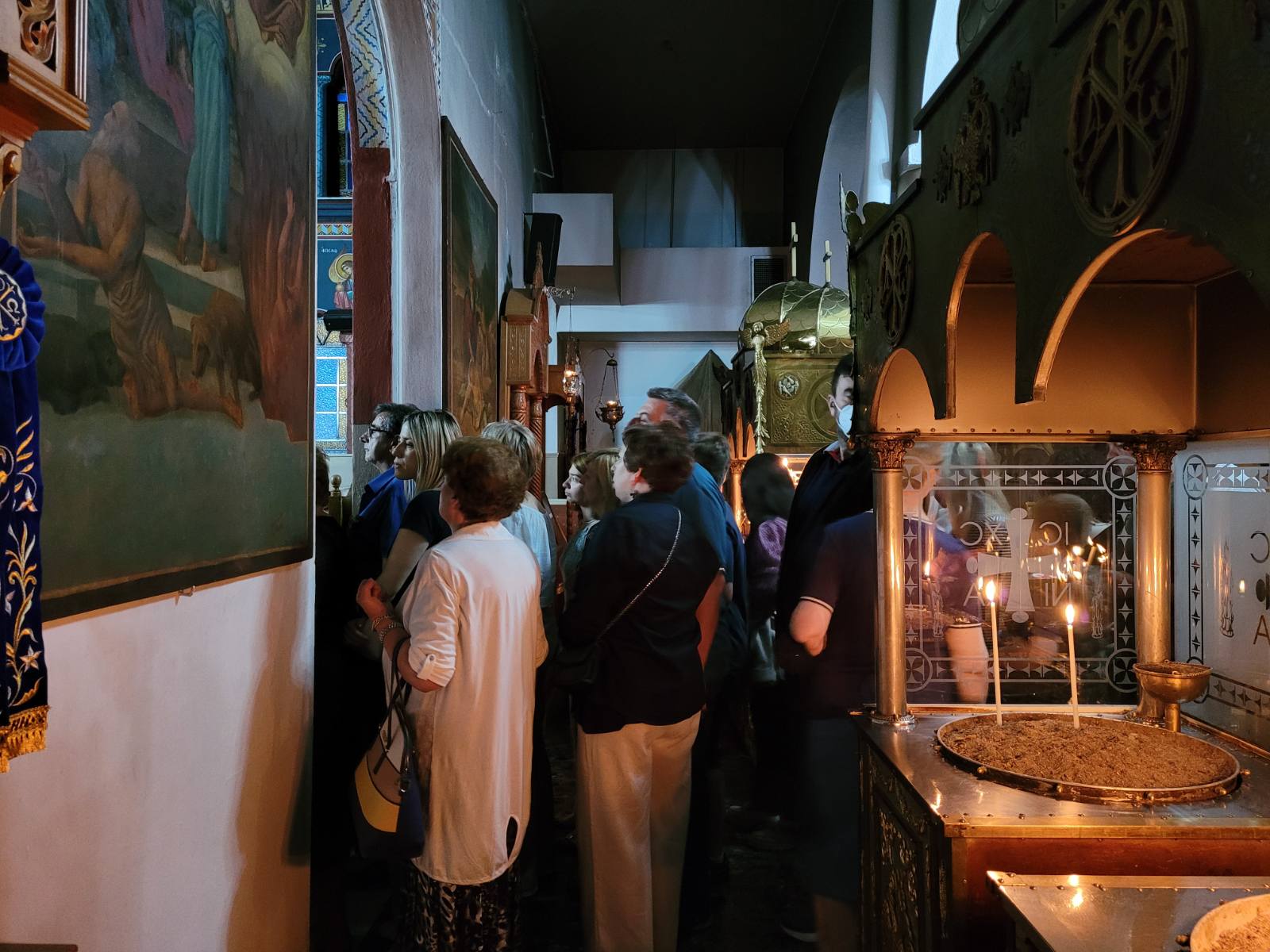 Χωρίς τέλος η προσέλευση των Λαρισαίων πιστών στον Ιερό Ναό της Αγίας Τριάδος, στη συνοικία της Φιλιππούπολης, για τον εορτασμό του Αγίου Πνεύματος.