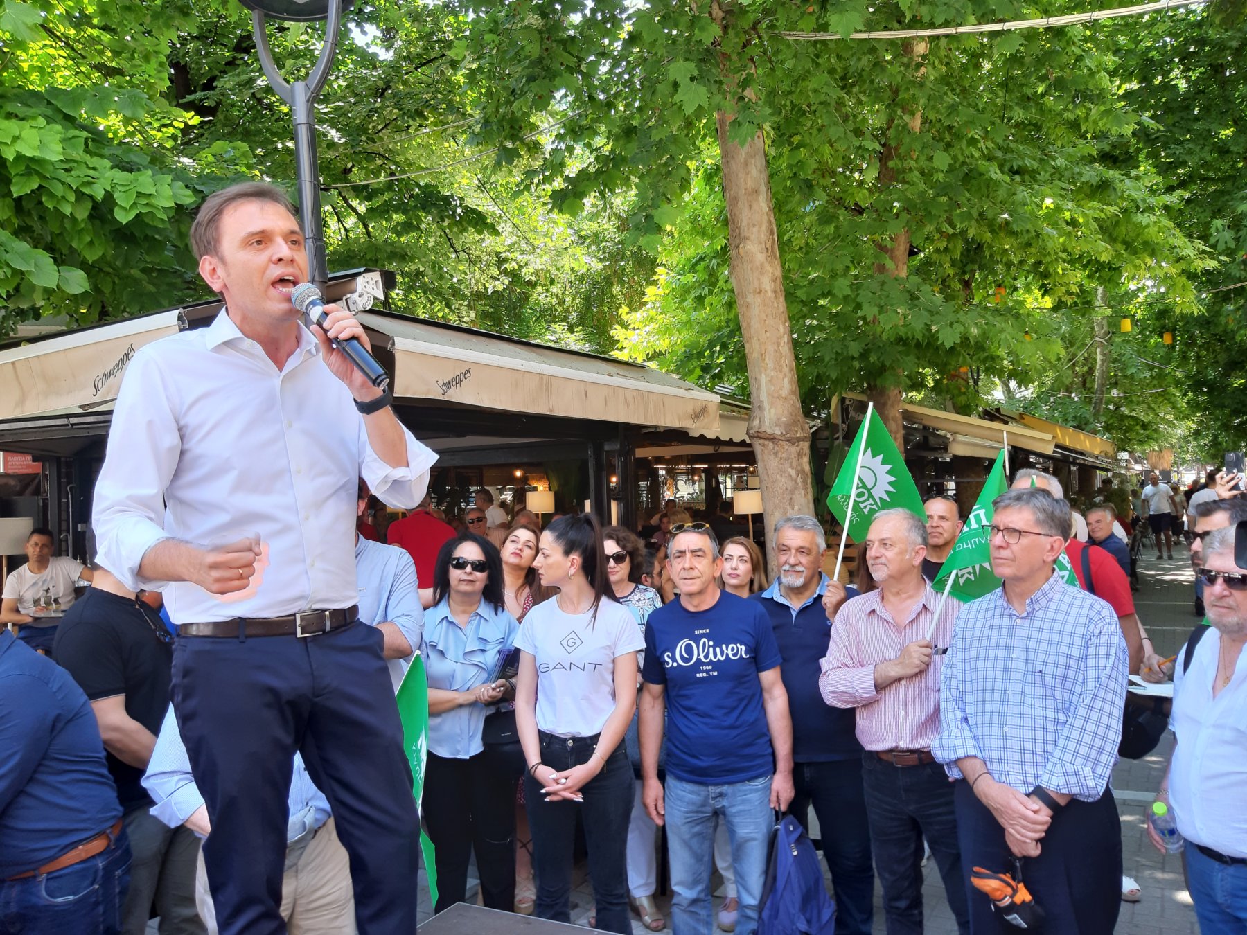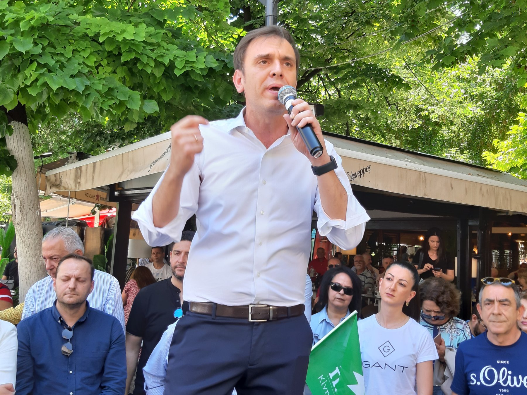 Κατά την ομιλία του ο υποψήφιος βουλευτής επικρατείας έστρεψε τα “βέλη” του προς την κυβέρνηση σχολιάζοντας μεταξύ άλλων τα θύματα από την πανδημία και το δυστύχημα των Τεμπών, την ακρίβεια και τα “pass”.