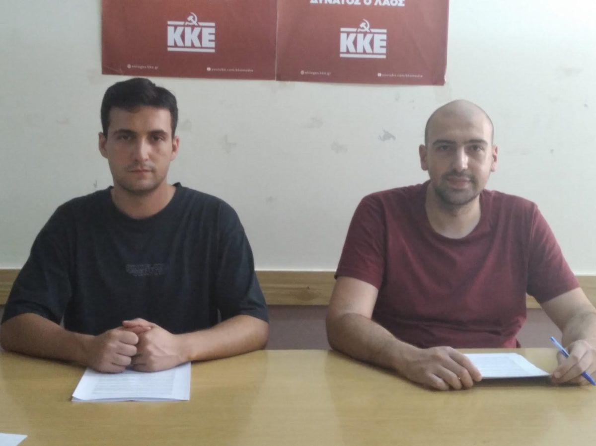 Συνέντευξη Τύπου παραχώρησαν οι Παναγιώτης Κοδέλας γραμματέας του Συμβουλίου Περιοχής Θεσσαλίας, μέλος του Κ.Σ της ΚΝΕ και ο Κουρελάς Κώστας μέλος του Συμβούλιου Περιοχής Θεσσαλίας της ΚΝΕ, σήμερα το μεσημέρι της Τρίτης στα γραφεία του ΚΚΕ στη Λάρισα, όπου ειπώθηκαν τα εξής: