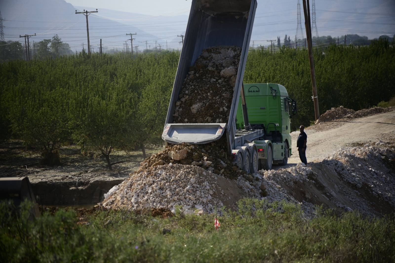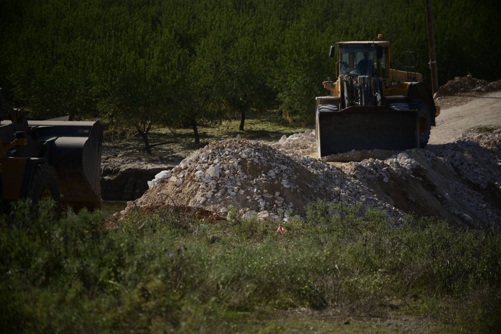 Πλέον στο σημείο γίνονται με ασταμάτητο ρυθμό χωματουργικές εργασίες προκειμένου να μπαζωθεί η συγκεκριμένη κοίτη.
