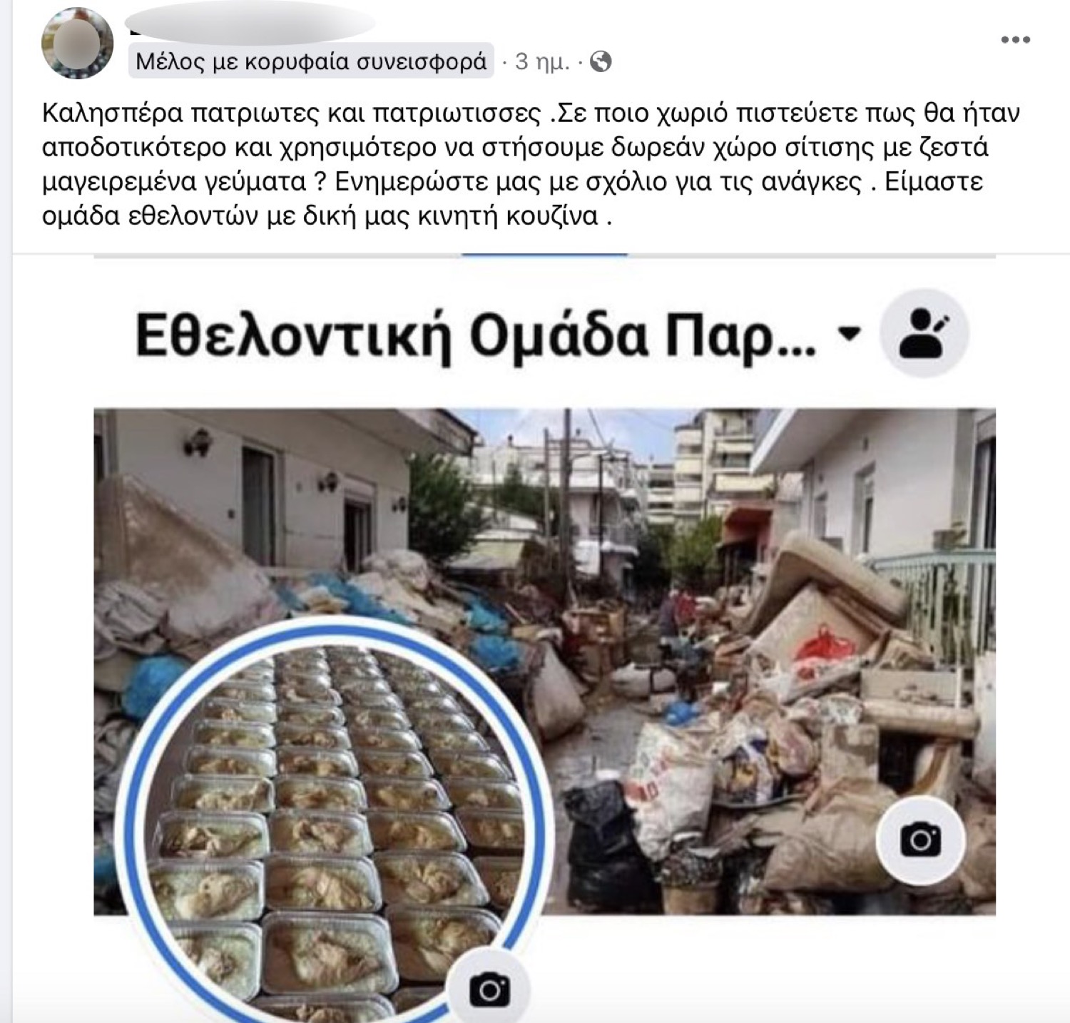 Όσο αδυσώπητο ήταν το χτύπημα τόσο γιγάντιο ήταν και το κύμα συμπαράστασης από τον συνάνθρωπο προς τον συνάνθρωπο. Αμέσως συγκροτήθηκε η εν λόγω ομάδα από απλούς πολίτες και η ανταπόκριση είναι τεράστια. Συμπολίτες μας που καταστράφηκε το βιος τους με αξιοπρέπεια ζητούν μια χείρα βοηθείας και συμπολίτες μας που σπεύδουν με τονισμένο το αίσθημα της αλληλεγγύης μέσα τους, να συνεισφέρουν όπως και με ότι μπορούν.