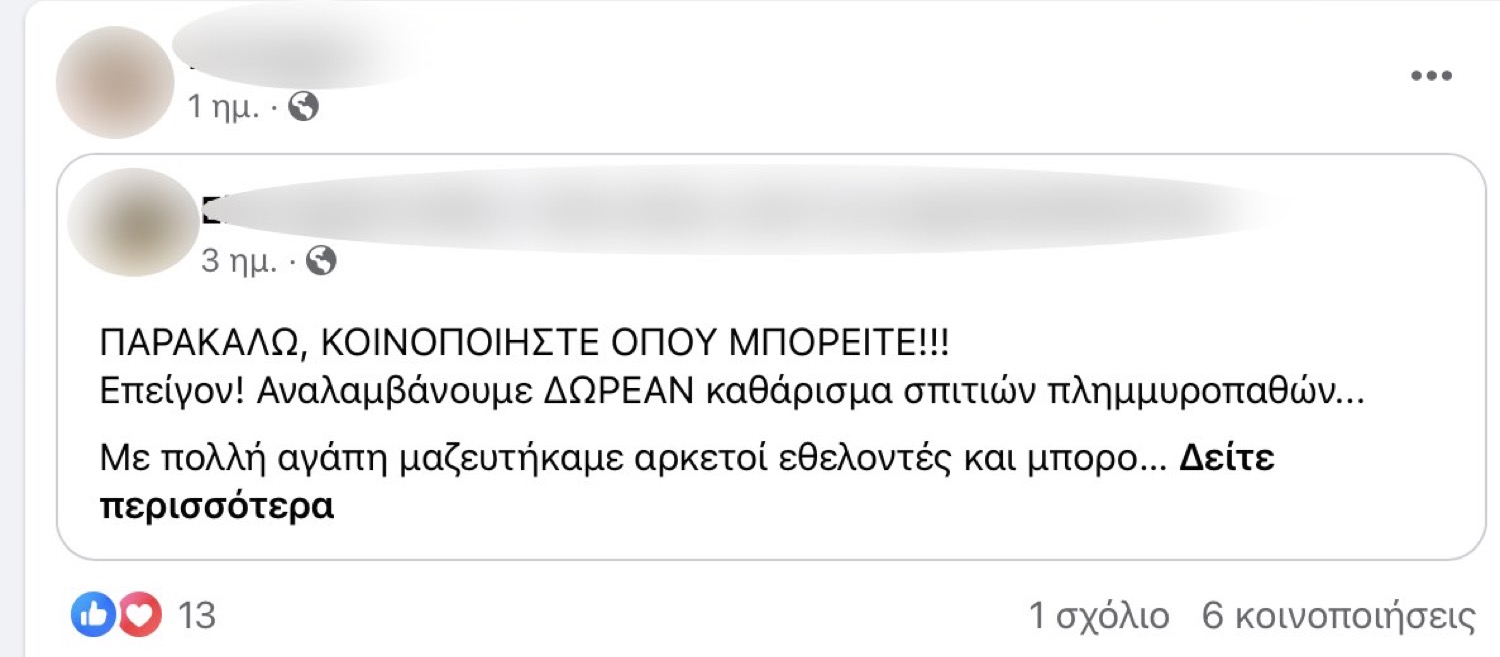 Λάρισα: Η ομάδα πλημμυροπαθών στο facebook που αριθμεί ήδη 8.000 μέλη – Συγκινητικό, τεράστιο κύμα συμπαράστασης, η ανθρωπιά δεν πέθανε