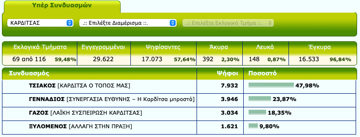 Το αποτέλεσμα μέχρι στιγμής είναι περίπου στο 48% για τον έμπειρο αυτοδιοικητικό.
