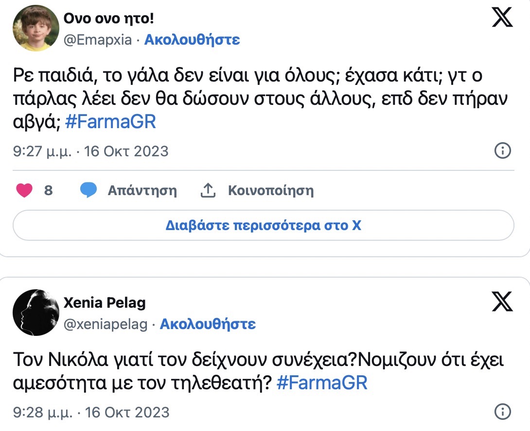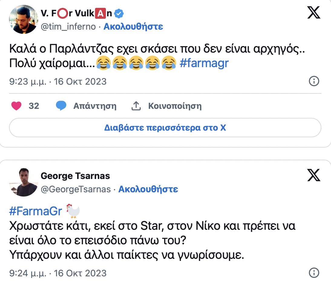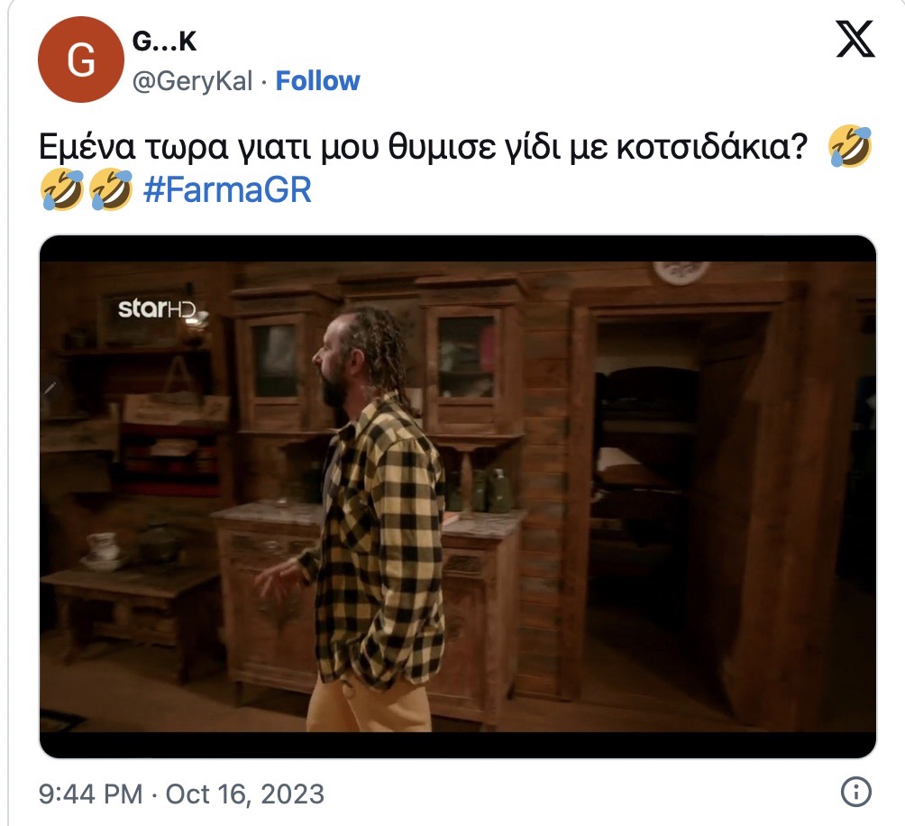 Πολλή τροφή για σχόλια στο Twitter έδωσε ο 43χρονος Λαρισαίος αγρότης – κτηνοτρόφος Νίκος Παρλάτζας που συμμετέχει στο ριάλιτι “Φάρμα” του Star.