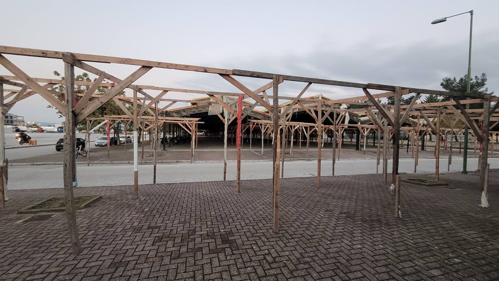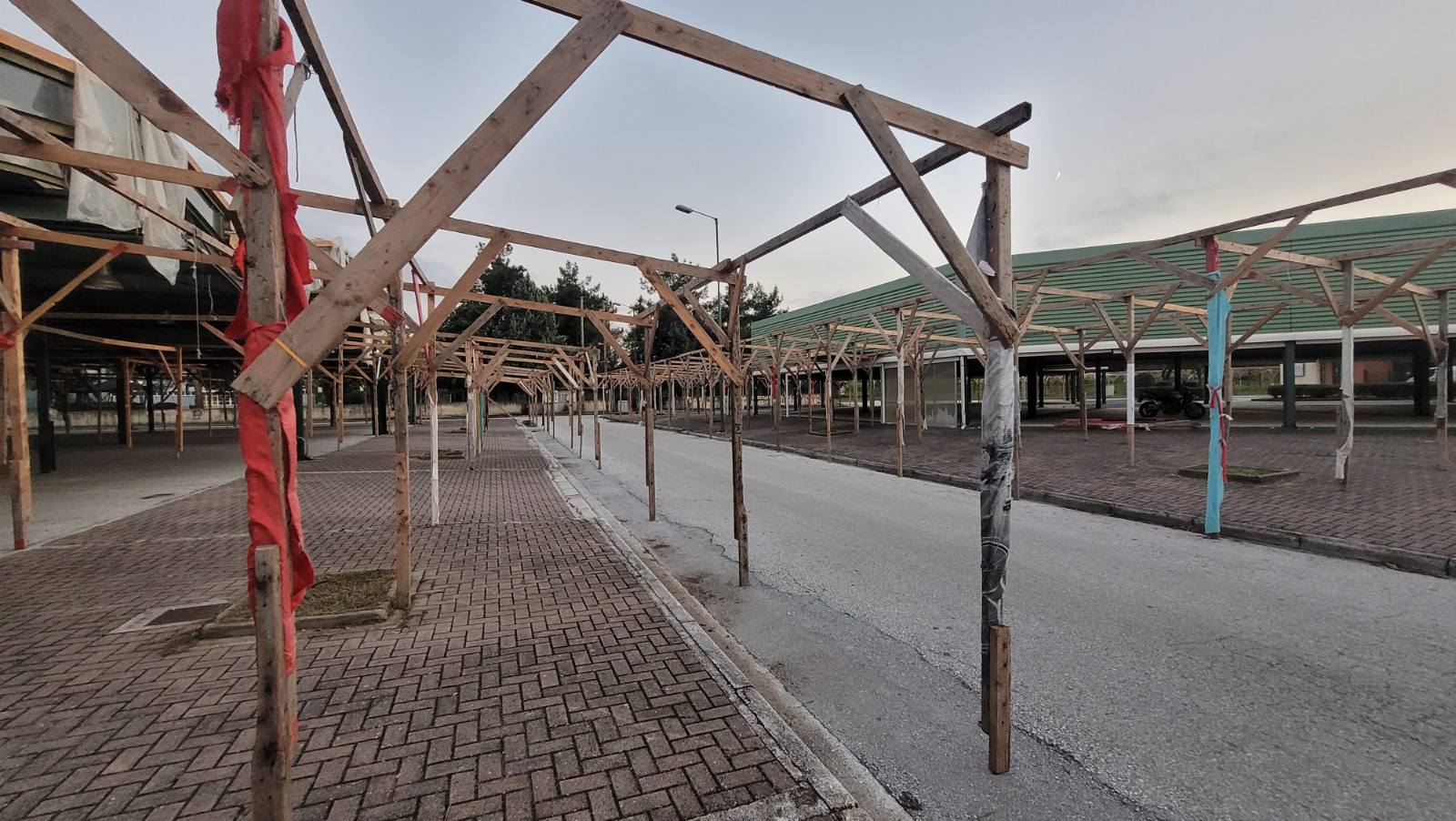 39 ημέρες μετά ο χώρος παραμένει «έτοιμος» για το παζάρι, αφού παρά την ακύρωση του τελευταίου δεν έχει γίνει καμία προσπάθεια ξεστήματος των πρόχειρων κατασκευών, που θα βοηθούσαν στη διεξαγωγή του.