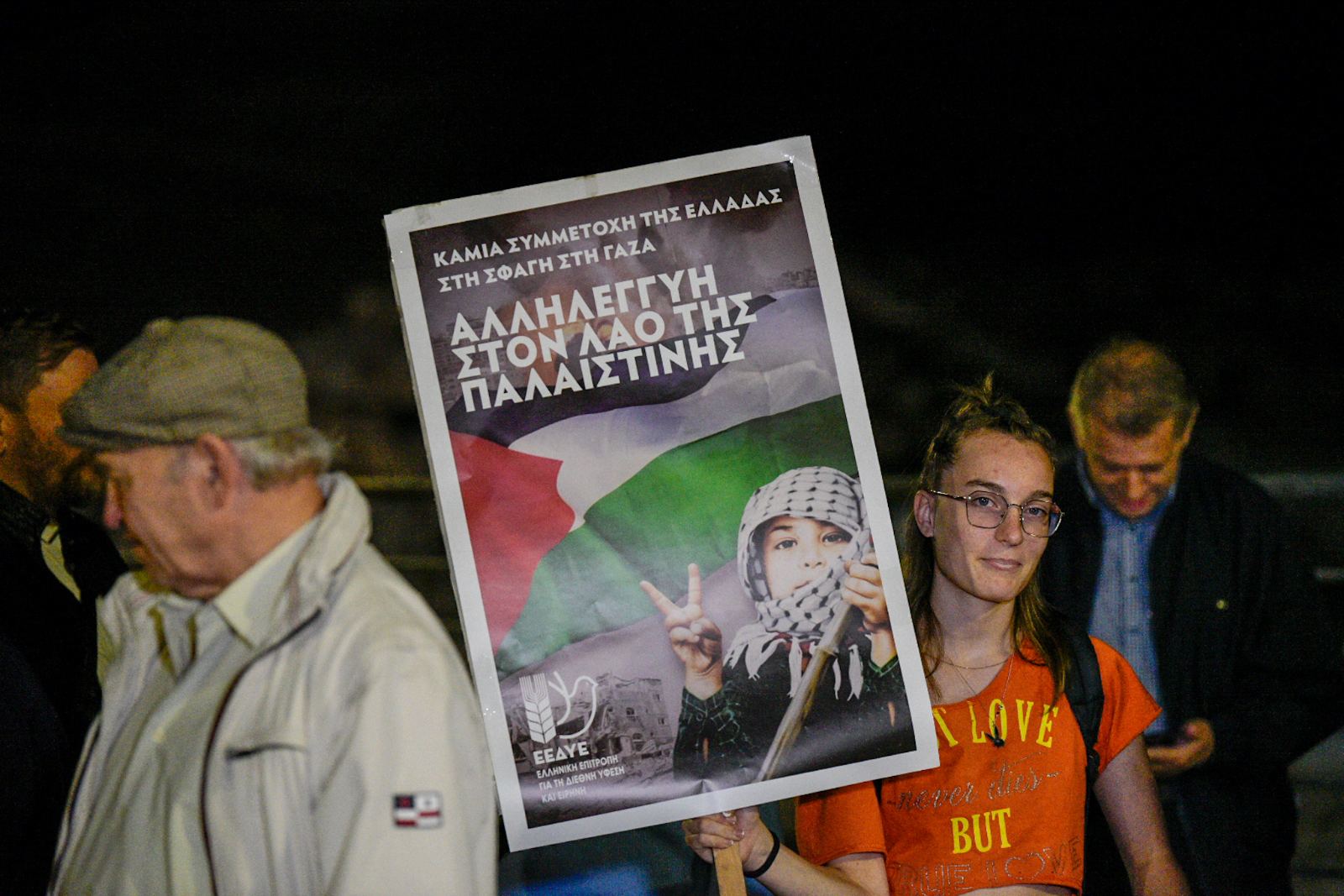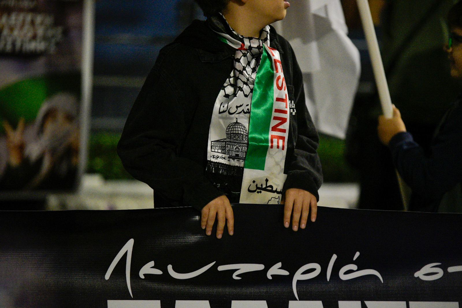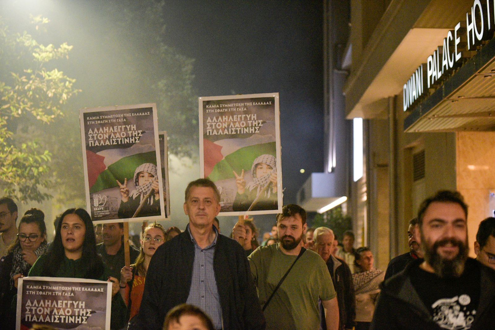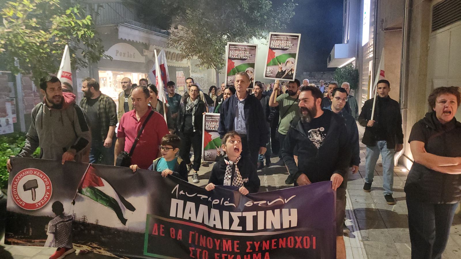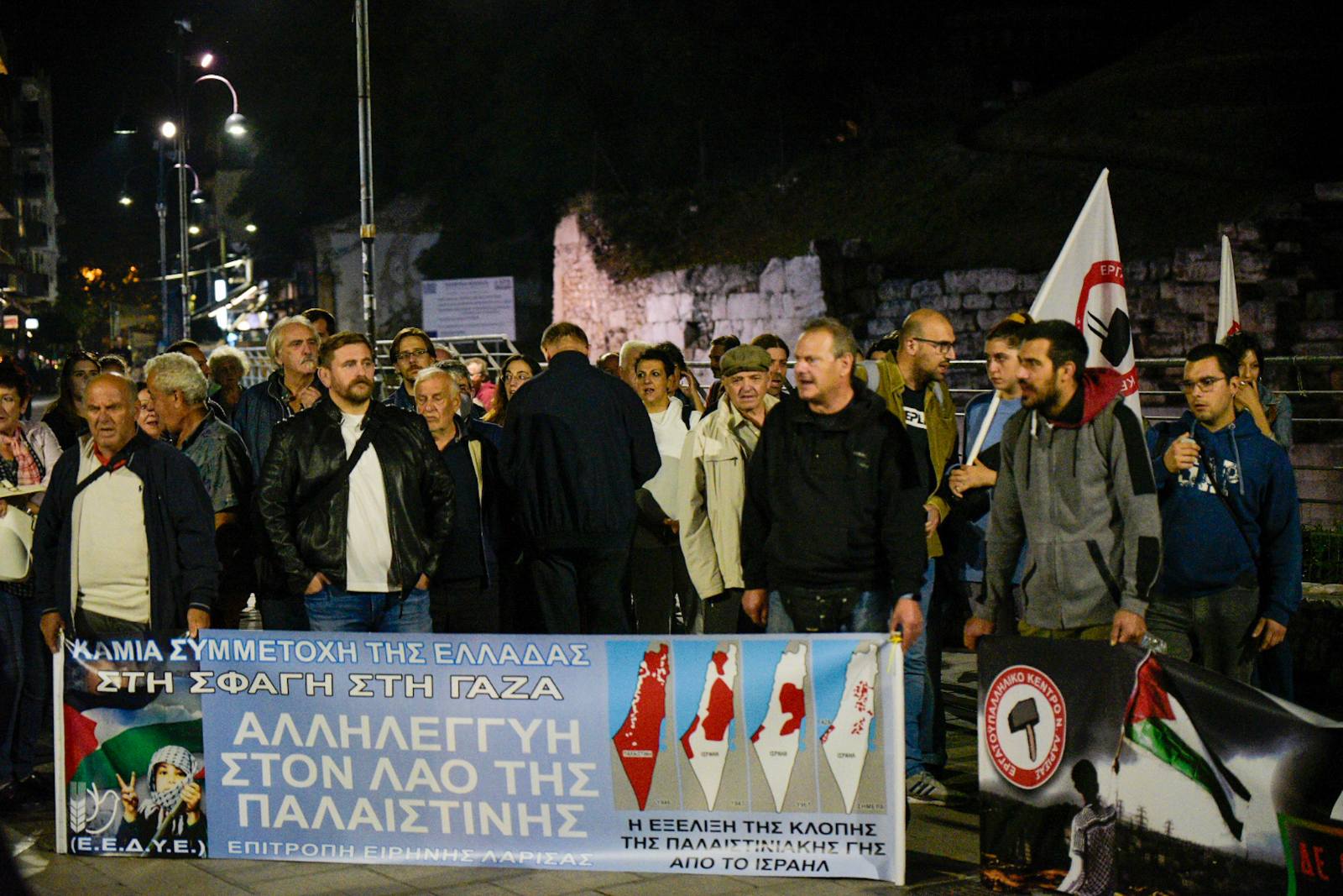 Συγκέντρωση και πορεία αλληλεγγύης για τους Παλαιστίνιους στη Λάρισα (βίντεο – φωτό)