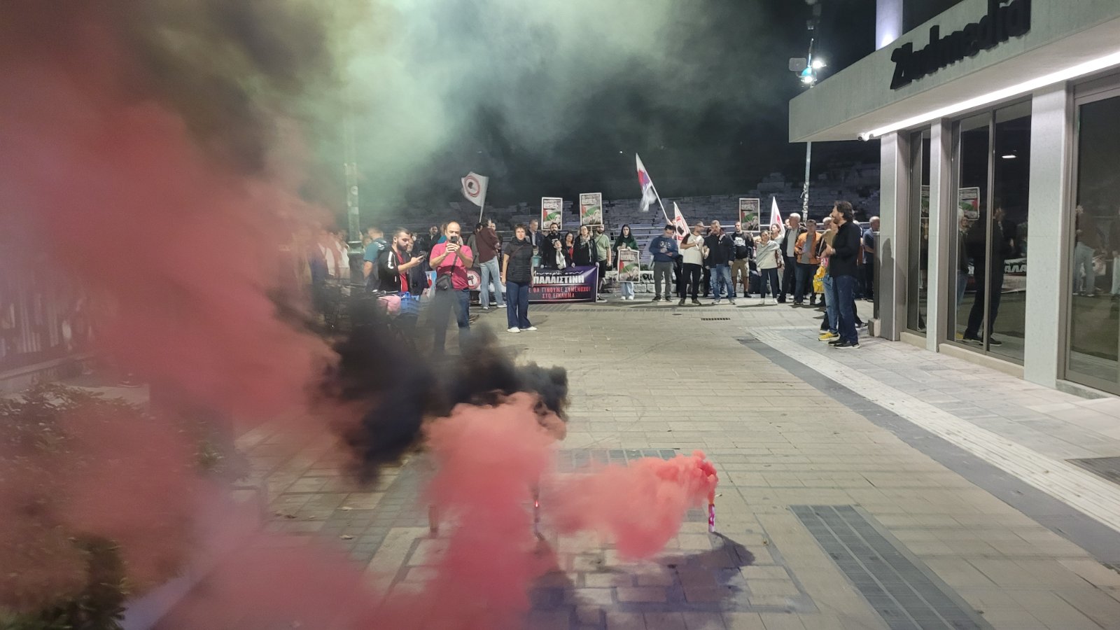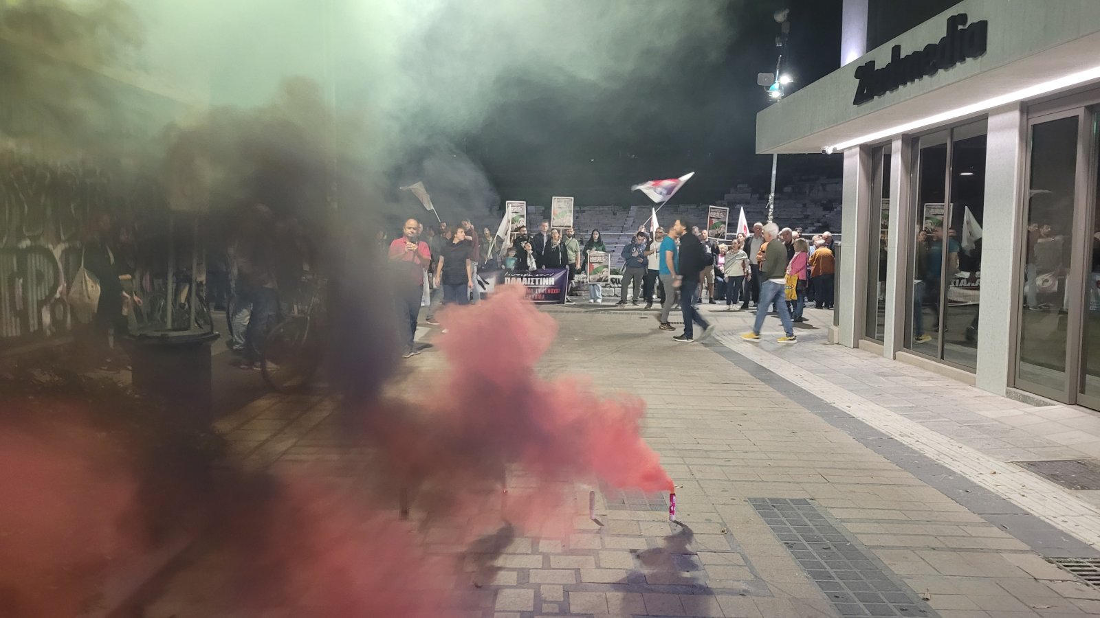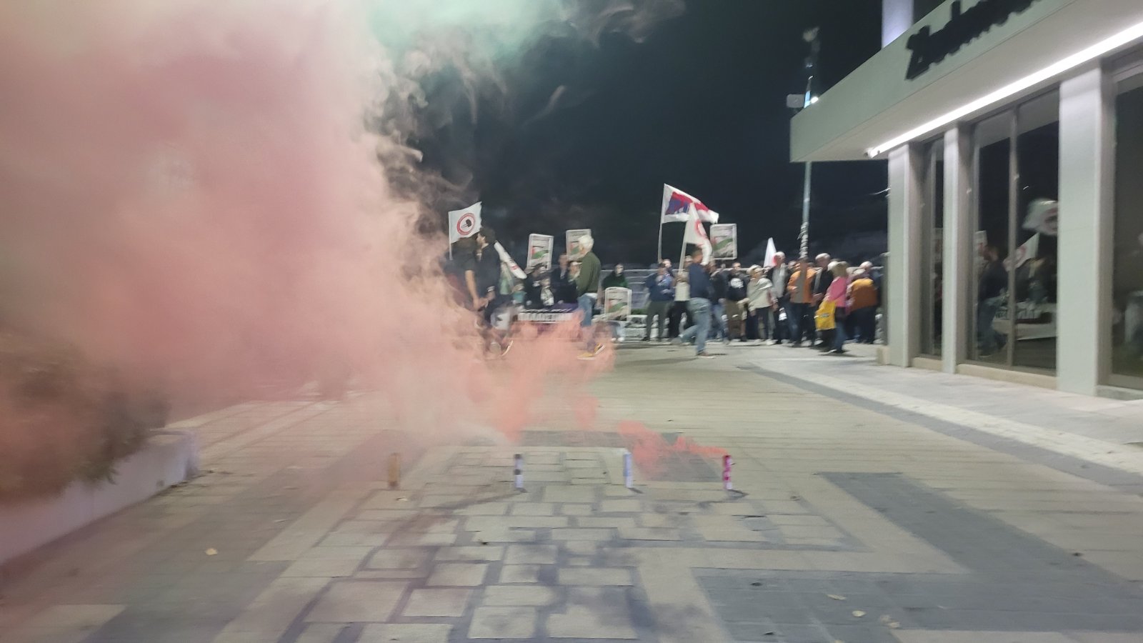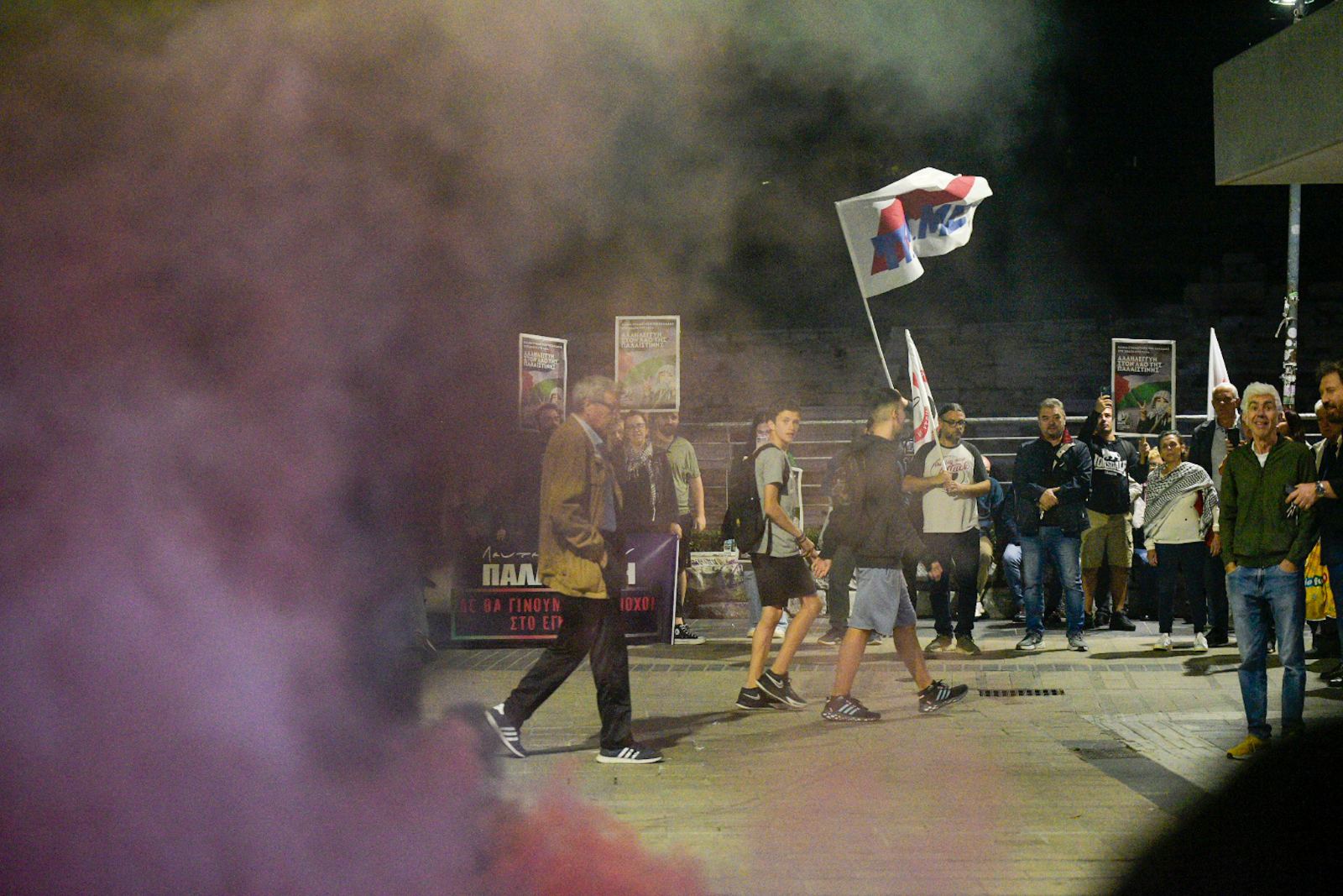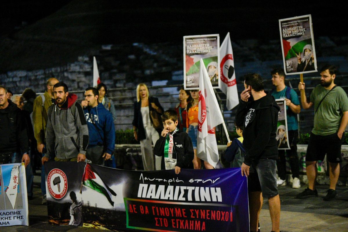 «Λευτεριά στην Παλαιστίνη» φώναξαν απόψε, τη Δευτέρα το βράδυ οι Λαρισαίοι στο συλλαλητήριο που διοργάνωσε το Εργατικό Κέντρο Λάρισας μπροστά στο Ά Αρχαίο Θέατρο της πόλης.