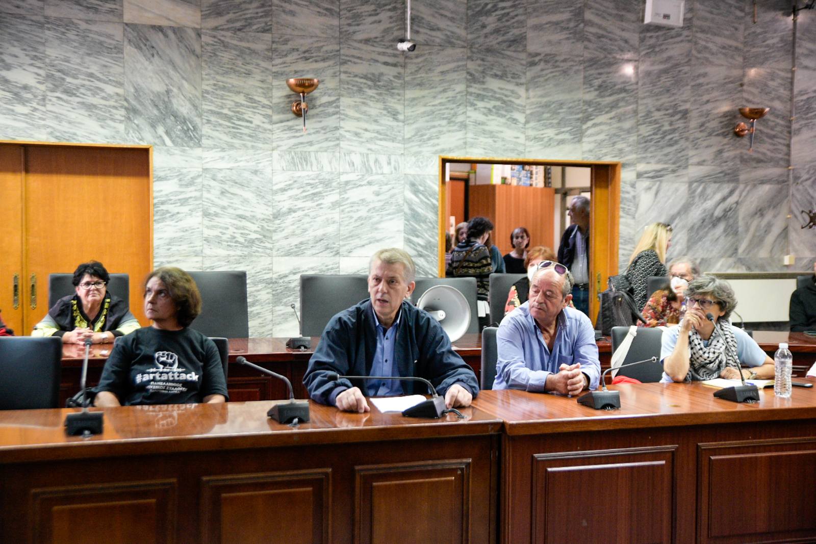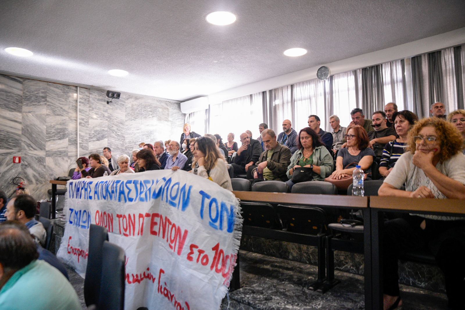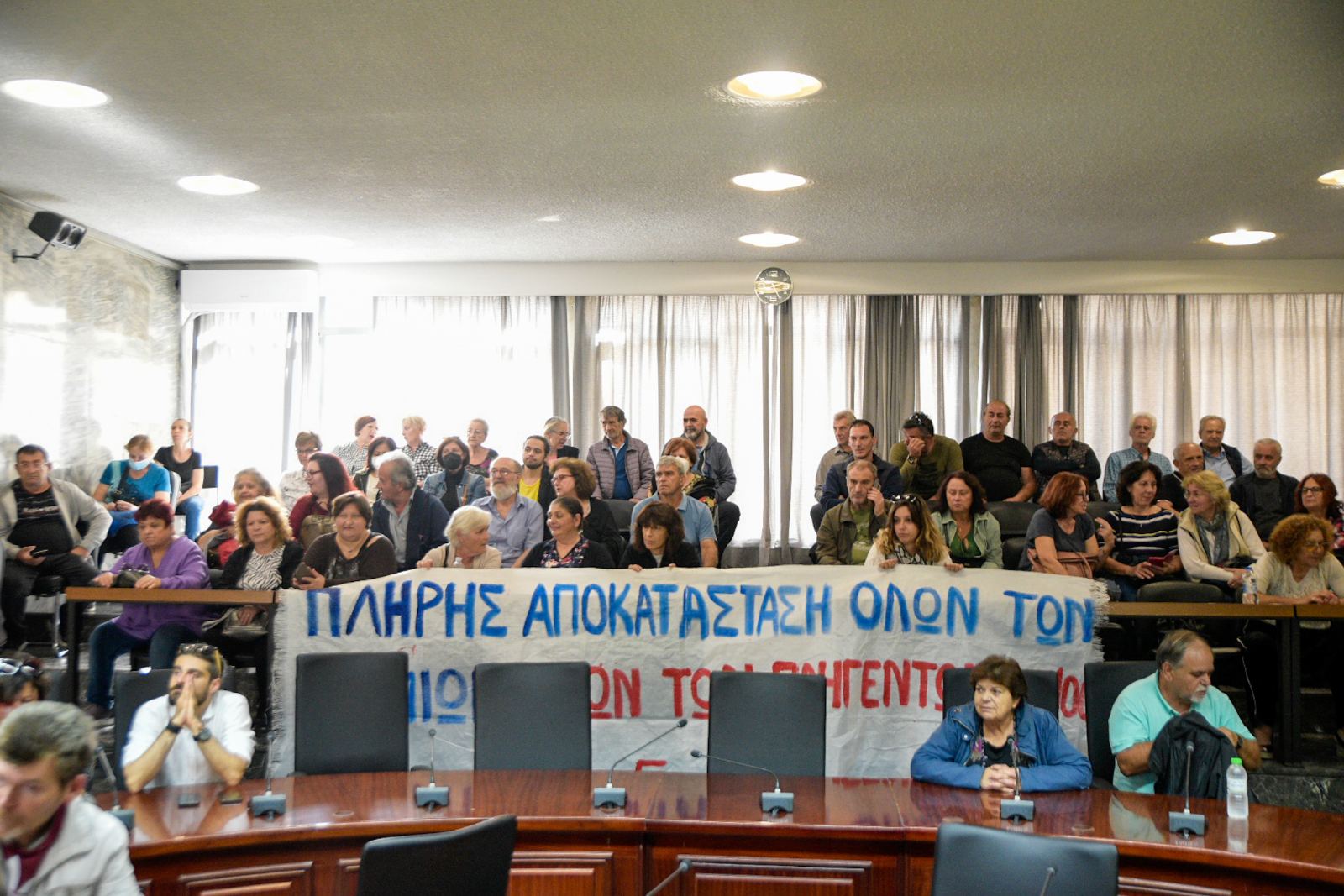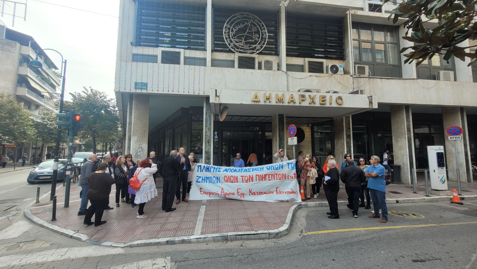 Τις φωνές τους ένωσαν για ακόμα μία φορά οι επιτροπές πλημμυροπαθών από τις Εργατικές Κατοικίες της Γιάννουλης, τη Φαλάνη, τον Άγιο Θωμά, το Κουλούρι και τη Νέα Σμύρνη , σήμερα, το μεσημέρι της Τετάρτης, έξω από το Δημαρχείο της πόλης.
