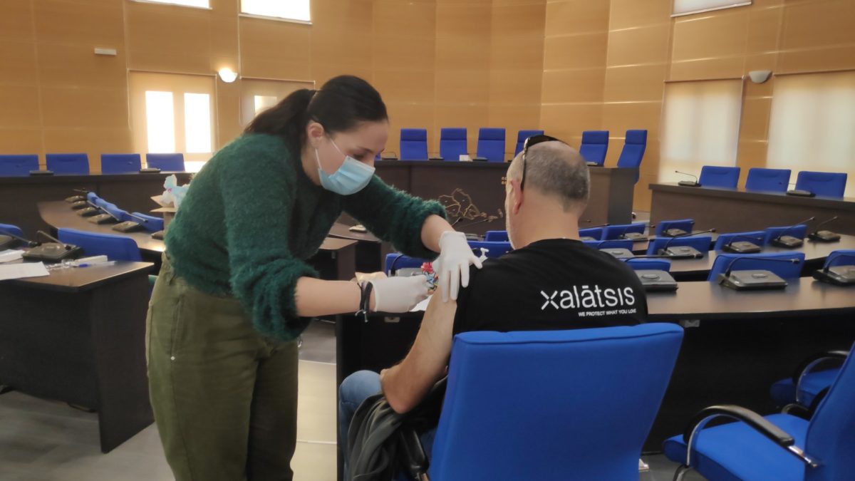 Ο εμβολιασμός έλαβε χώρα στην αίθουσα του Περιφερειακού Συμβουλίου του κτιρίου της Περιφέρειας.