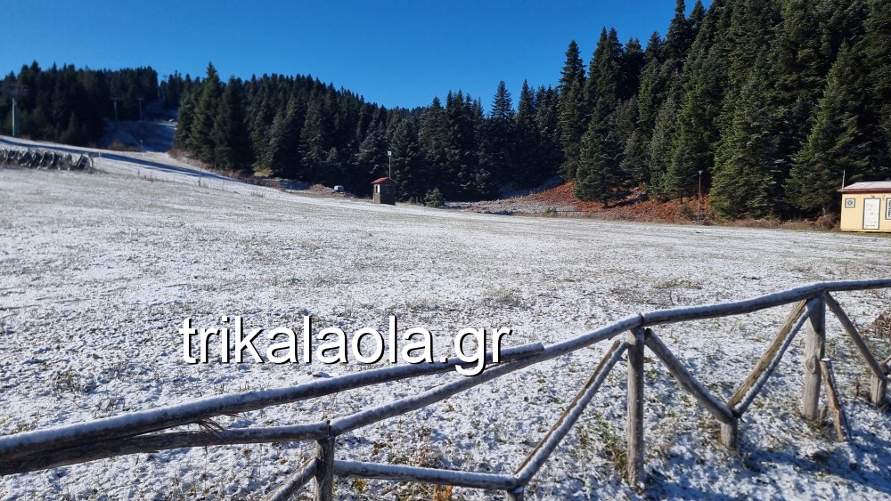 Μπορεί να το πασπάλισε απλώς χθες βράδυ (Σάββατο 25-11-2012), στην πρώτη χιονόπτωση που σημειώνεται για φέτος στην περιοχή του χιονοδρομικού κέντρου Περτουλίου και τα Περτουλιώτικα λιβάδια, αλλά δε παύει με το χιόνι να διαγράφονται πανέμορφες εικόνες στο ήδη μαγευτικό τοπίο της περιοχής των Τρικάλων και ένα από τα καλύτερα της Ελλάδος!