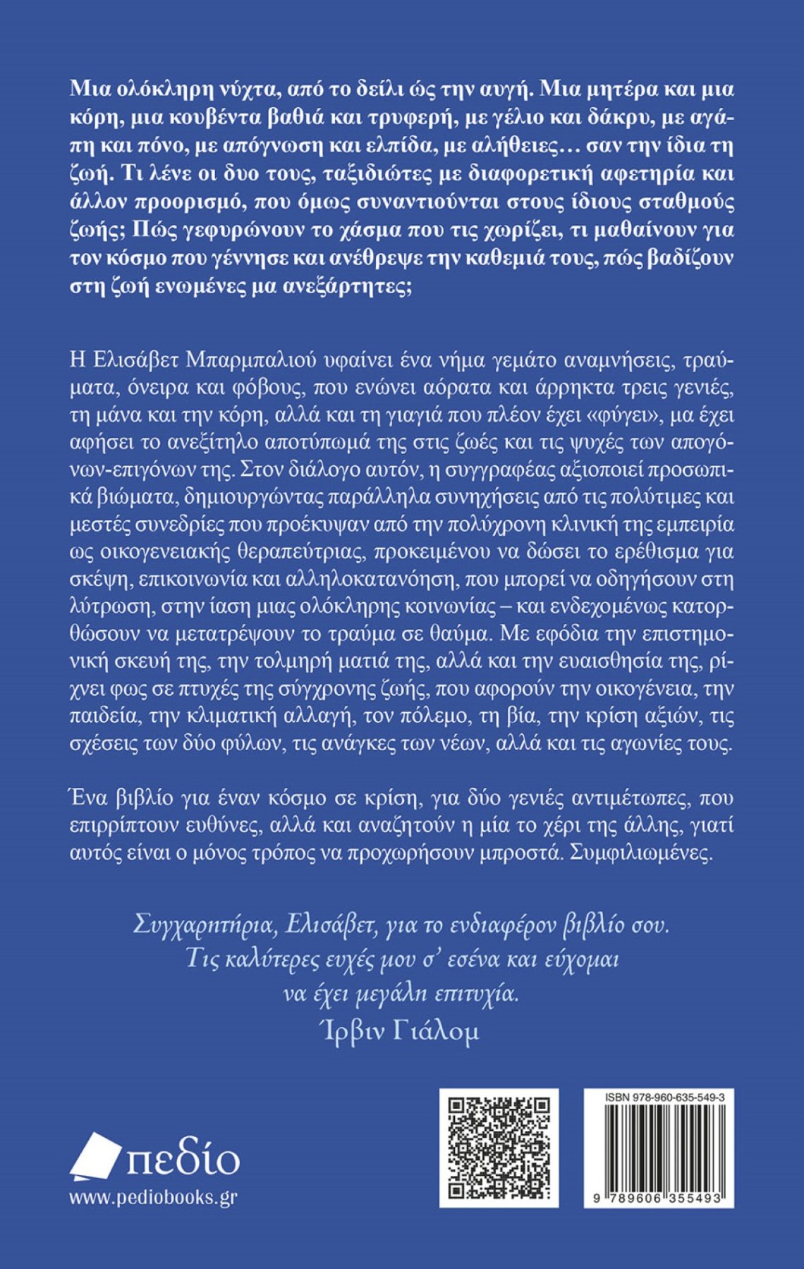 Το ΝΗΜΑ -Ινστιτούτο Συμβουλευτικής και Ψυχοθεραπείας, το βιβλιοπωλείο «Άνεμος», ο Δήμος Λάρισας και οι εκδόσεις ΠΕΔΙΟ διοργανώνουν την παρουσίαση του βιβλίου της Ελισάβετ Μπαρμπαλιού “ΓΕΝΝΗΘΗΚΑ ΣΤΟΝ ΒΟΡΡΑ, μεγάλωσες στον Νότο”, το Σάββατο 9 Δεκεμβρίου 2023 και ώρα 19:00, στο «Χατζηγιάννειο» Πνευματικό Κέντρο (Ρούσβελτ 59, Λάρισα).