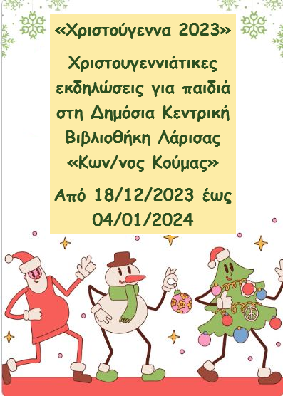 Χριστούγεννα 2023 «Χριστουγεννιάτικες εκδηλώσεις για παιδιά στη Δημόσια Κεντρική Βιβλιοθήκη Λάρισας «Κων/νος Κούμας»