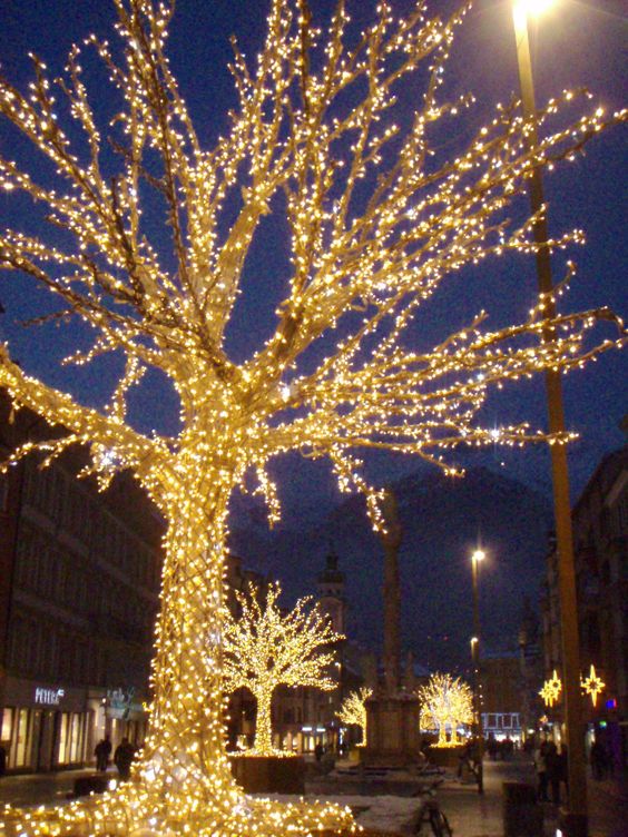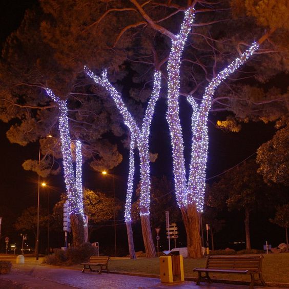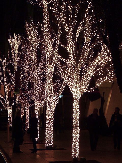 Στην Κεντρική πλατεία να φωτιστούν πάλι με το ίδιο χρώμα όλα τα δέντρα. Θεωρώ ότι ο διάκοσμος έρχεται από ψηλά, δηλαδή από αυτό που βλέπουμε προς τα πάνω και όχι από τα στολίδια στο κέντρο της πλατείας κάτι για το οποίο είμαι κάθετα αντίθετη, εκτός αν μπορούσε ο δήμος να υποστηρίξει έναν πολύ ακριβό στολισμό εκθεμάτων, φωτιζόμενων μόνο στο ίδιο χρώμα και πολύ προσεκτικά επιλεγμένων. Όπως για παράδειγμα τα παρακάτω αλλά πάντα, σε ένα χρώμα θερμό λευκό.