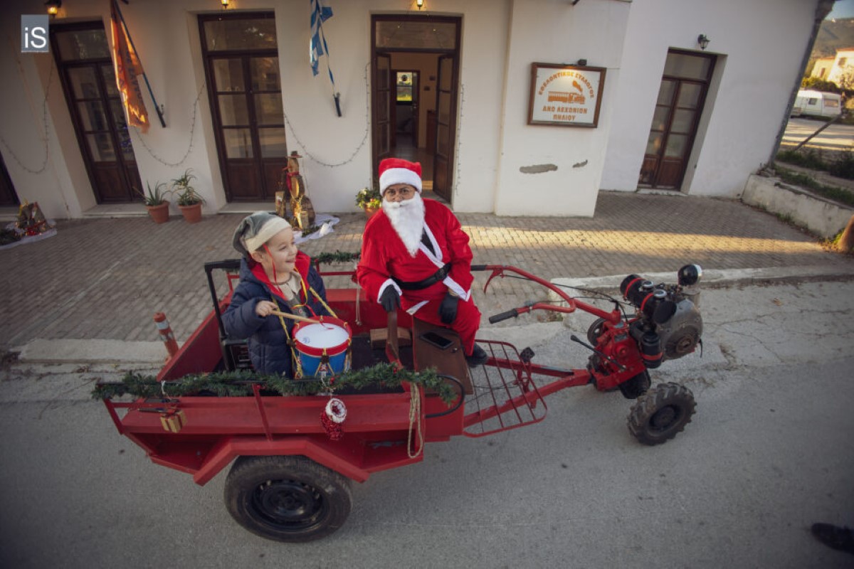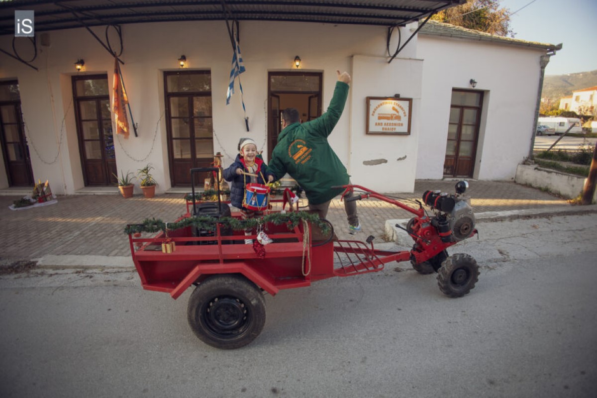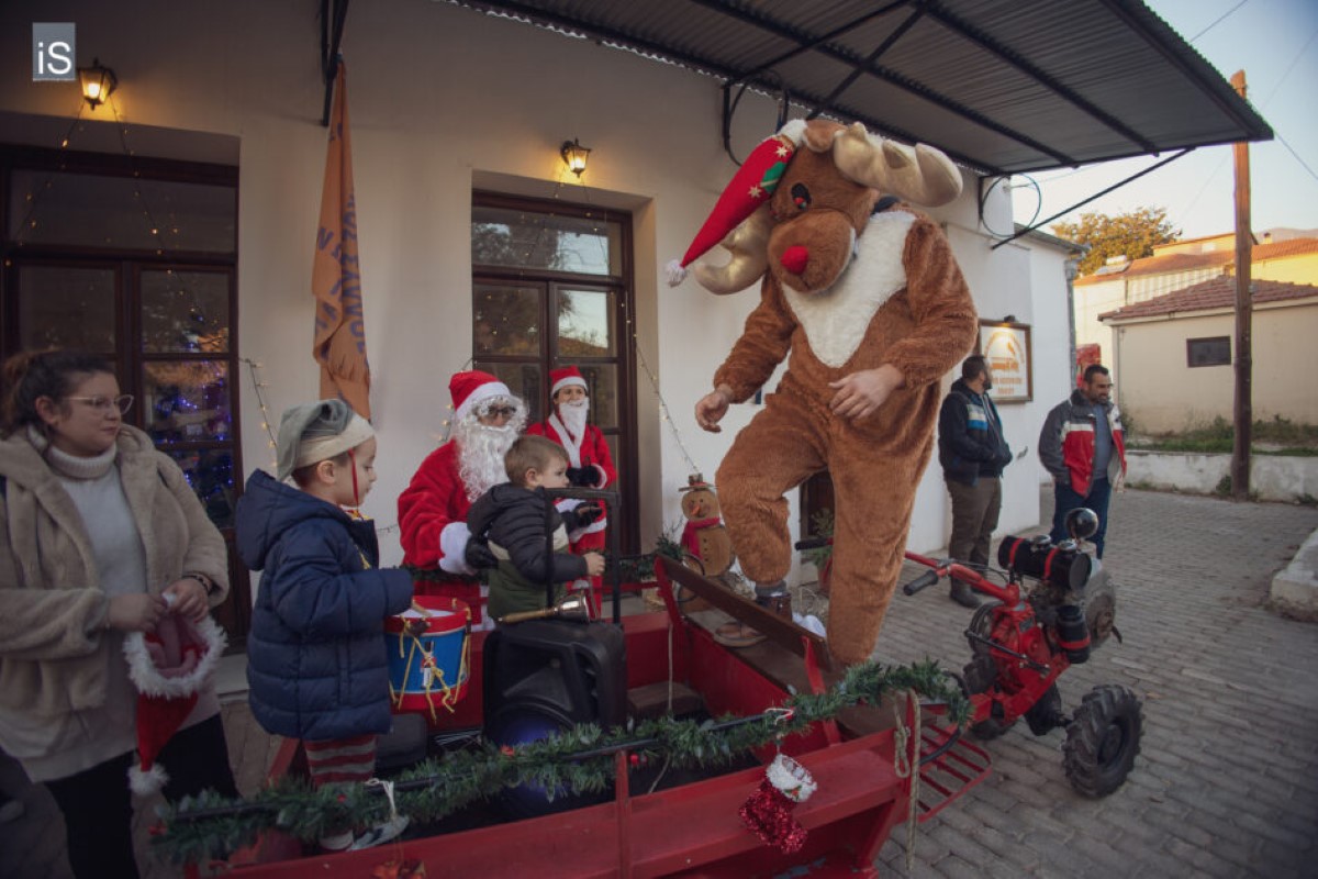 Με ένα αγροτικό μηχάνημα έφτασε στα Άνω Λεχώνια Πηλίου ο Άη Βασίλης συνοδευόμενος από τα ξωτικά του και τον τάρανδό του, σκορπίζοντας γέλιο, χαρά και προσμονή στα παιδιά του χωριού.