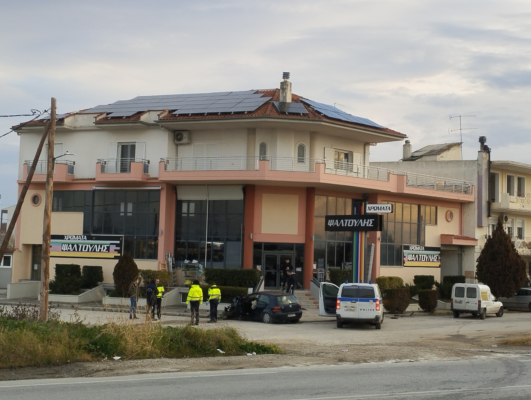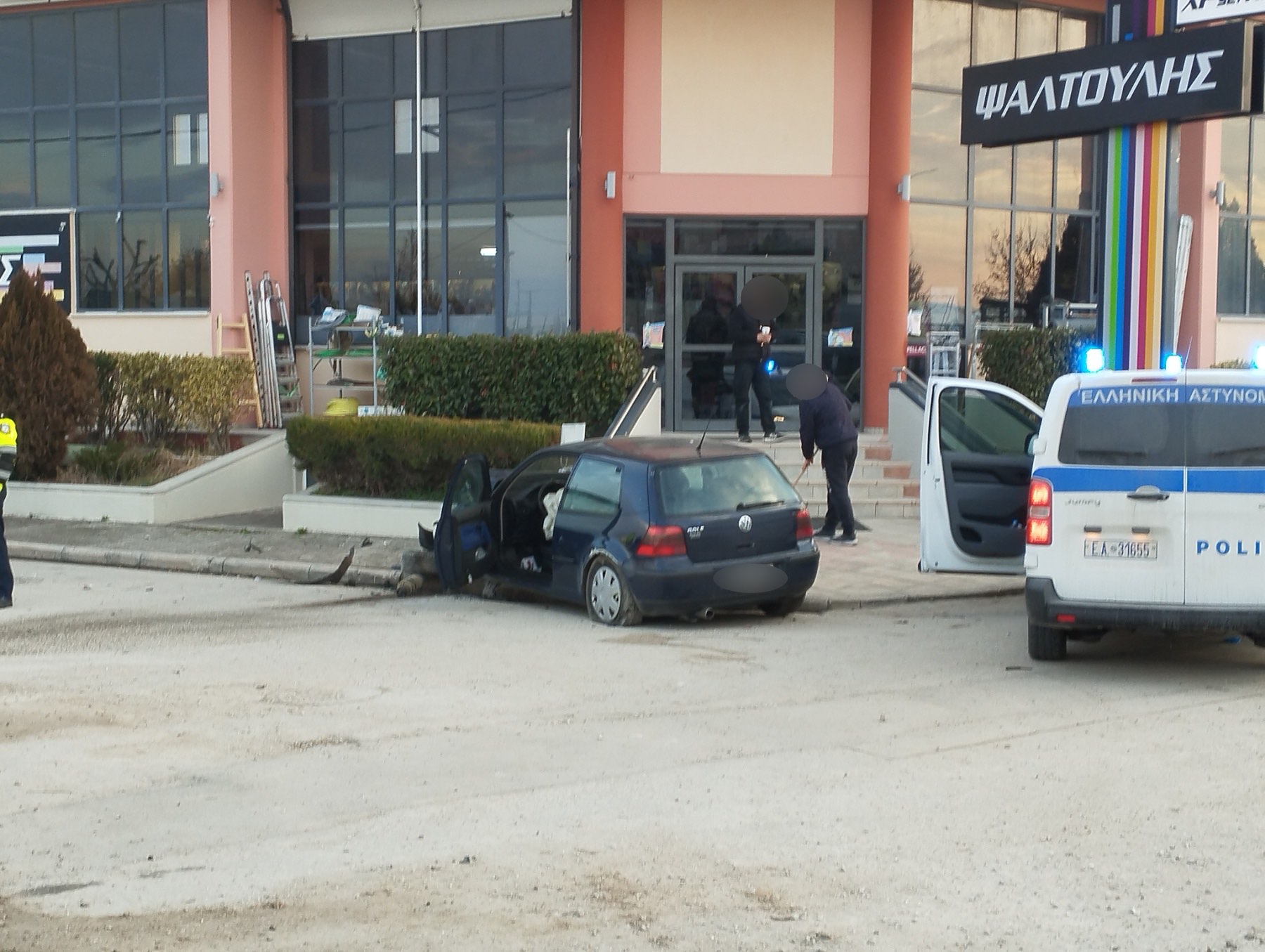 Το συμβάν έγινε υπό αδιευκρίνιστες ως στιγμής συνθήκες όταν το αυτοκίνητο 36χρονου οδηγού έφυγε από τον δρόμο και «καρφώθηκε» πάνω στο πεζοδρόμιο ακριβώς μπροστά από την βιτρίνα καταστήματος.
