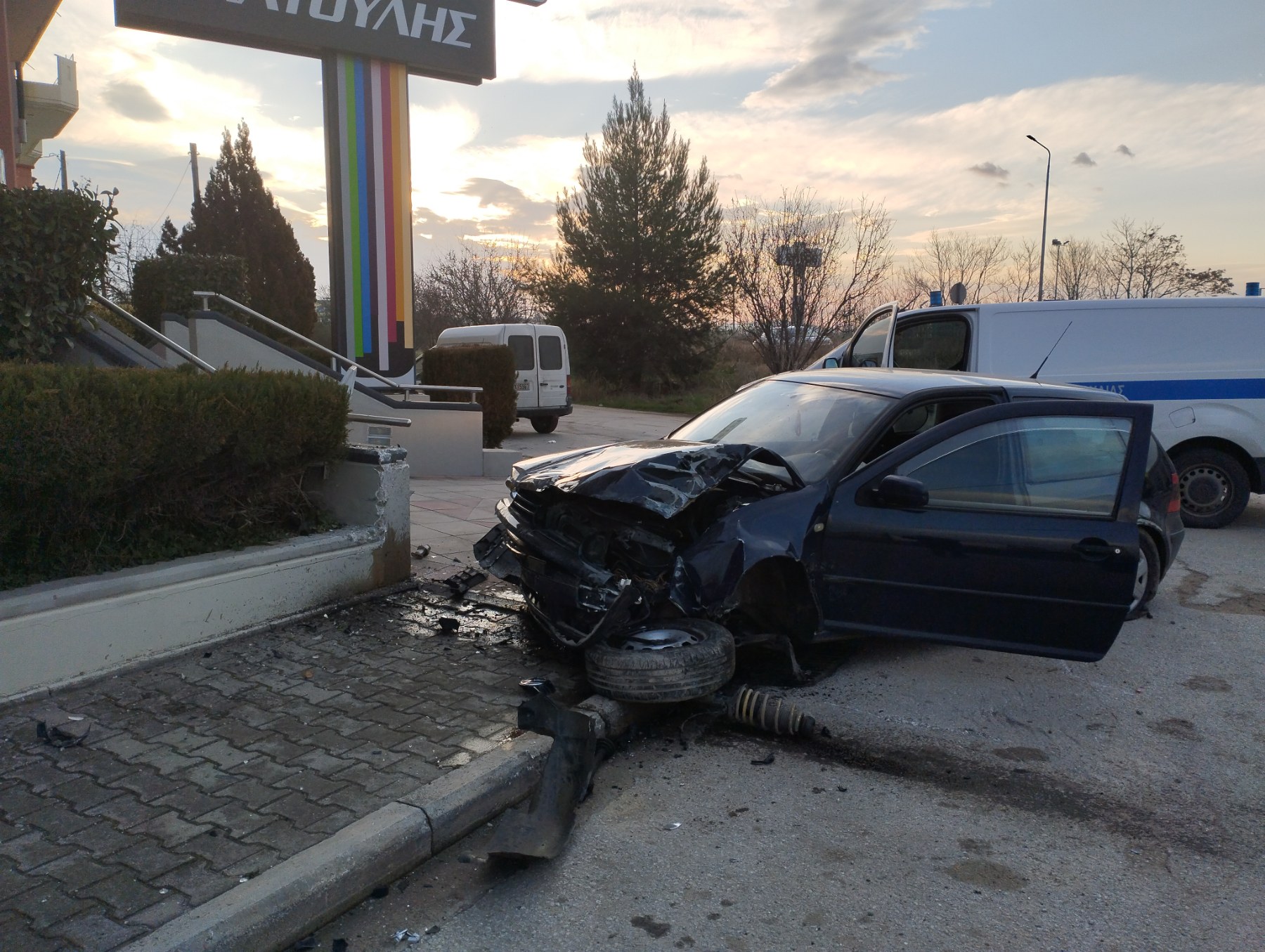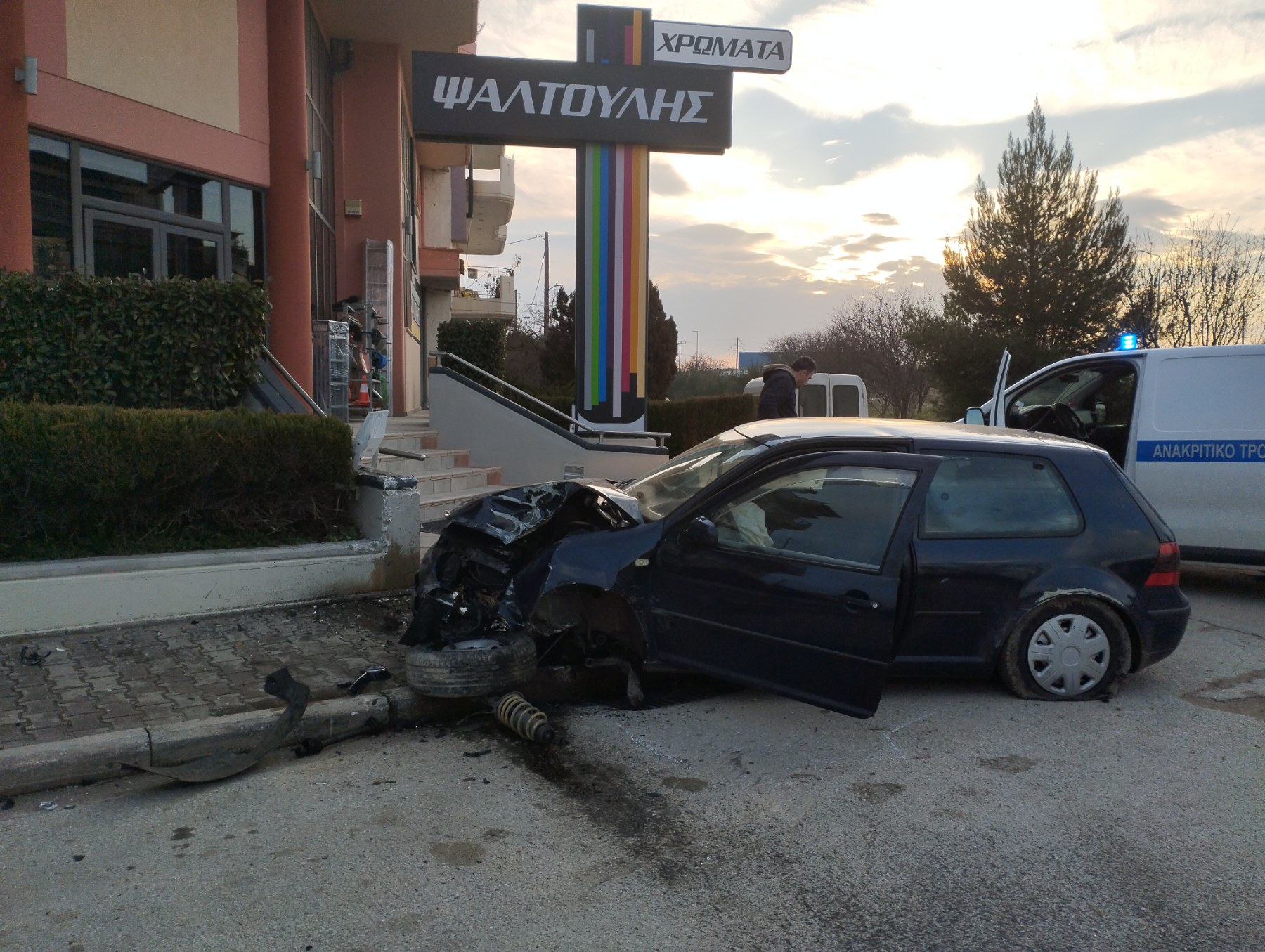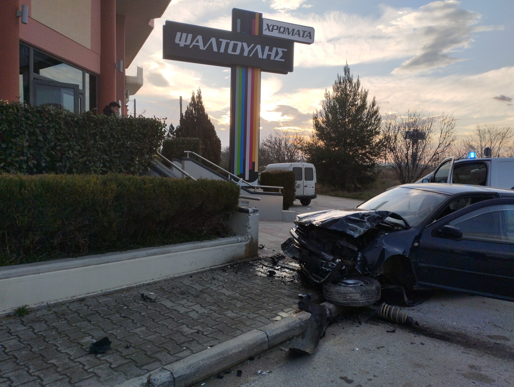 Λάρισα: Αυτοκίνητο «καρφώθηκε» στο πεζοδρόμιο λίγο πριν την βιτρίνα καταστήματος – Στο νοσοκομείο ο 36χρονος οδηγός (φωτο)