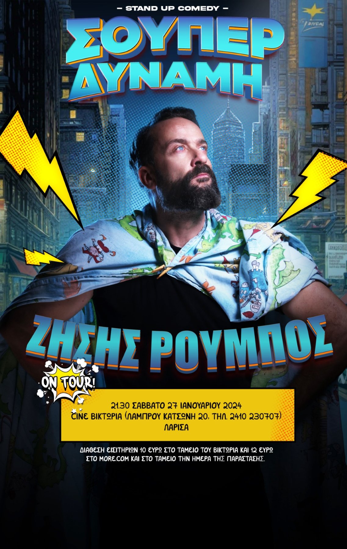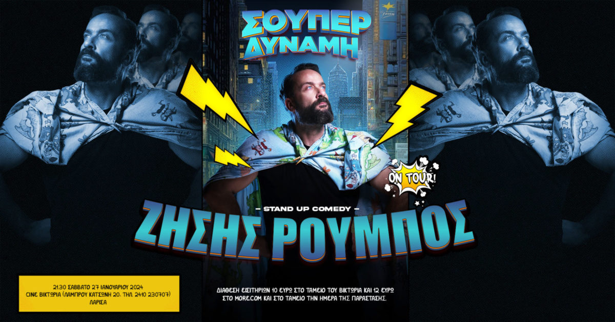 Ο κωμικός Ζήσης Ρούμπος φέρνει την “Σούπερ Δύναμη” του στη Λάρισα