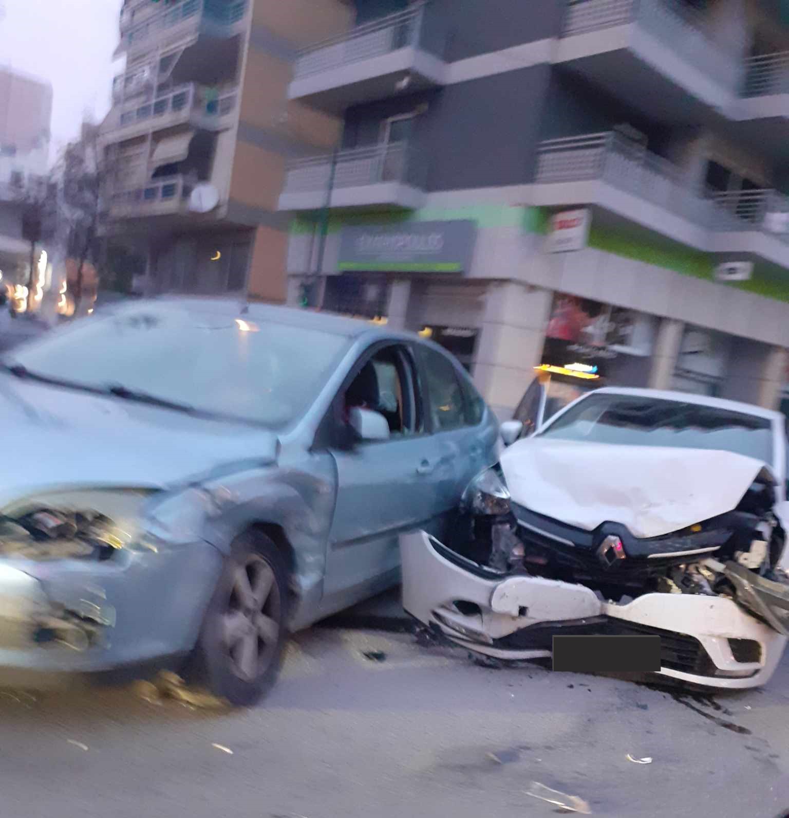 Τροχαίο ατύχημα μετά από σφοδρή σύγκρουση αυτοκινήτων σημειώθηκε σήμερα, το απόγευμα του Σαββάτου, στη Λάρισα.