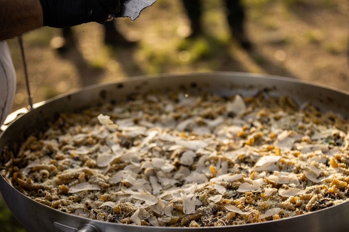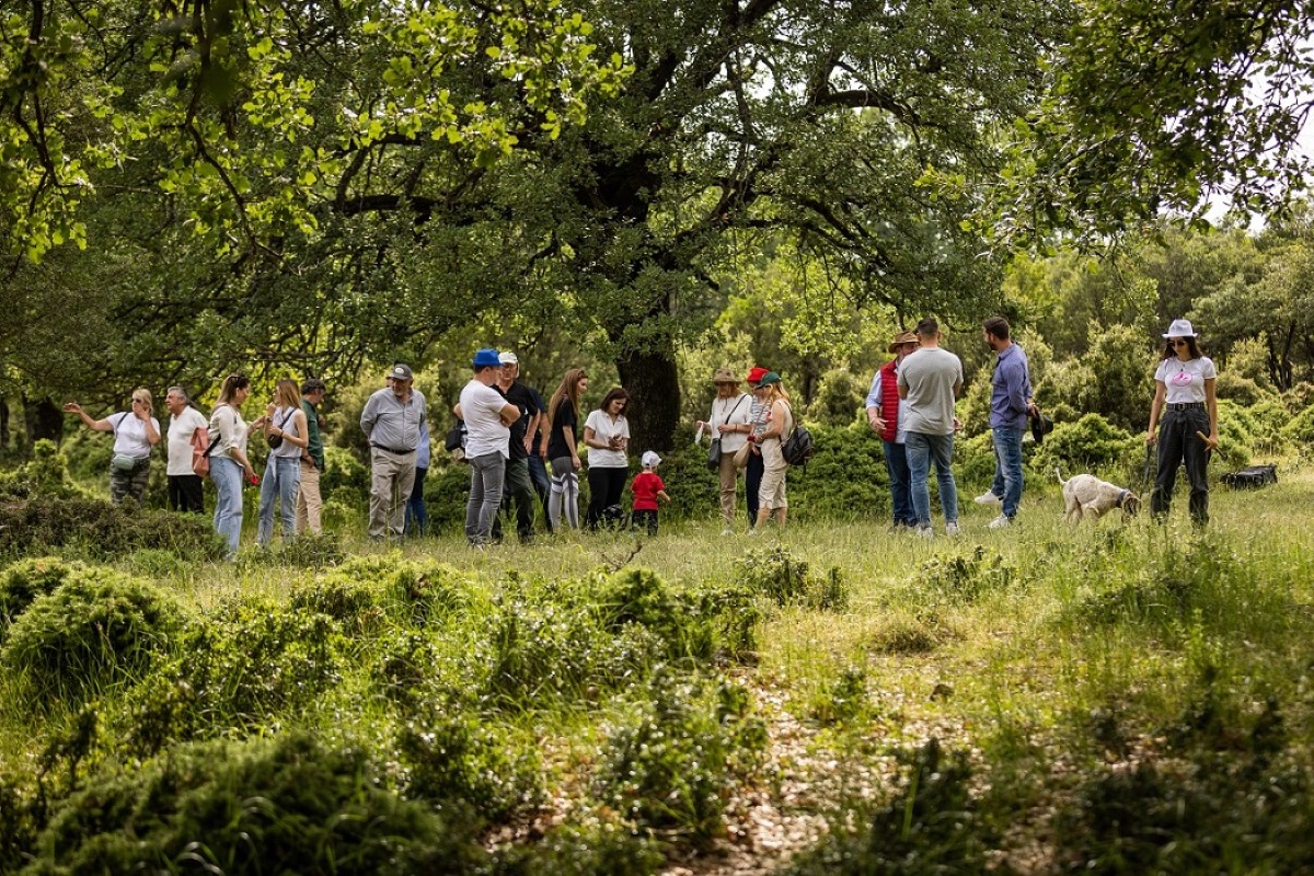 Το βρίσκουν εξειδικευμένα σκυλιά, ενώ στη συνέχεια η τρούφα μετατρέπεται σε μία υπέροχη τρουφομακαρονάδα, την οποία οι επισκέπτες απολαμβάνουν μέσα στην καρδιά του υπεραιωνόβιου δάσους βελανιδιών.