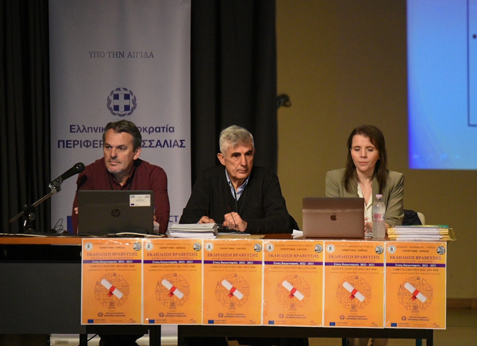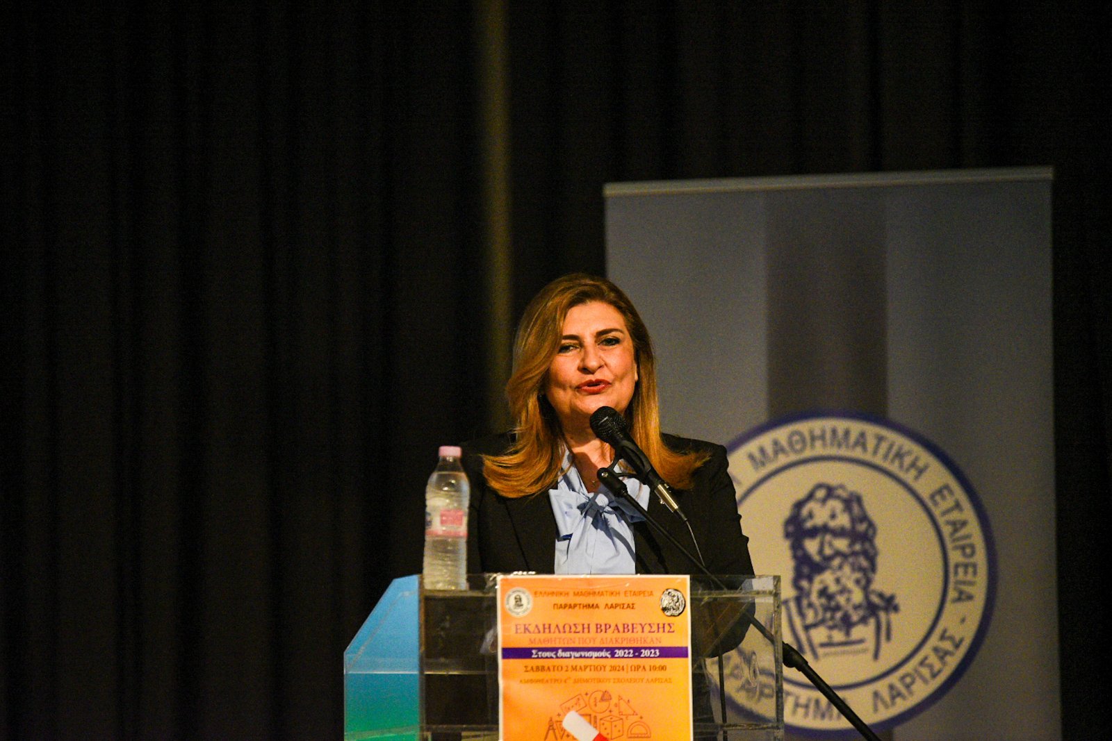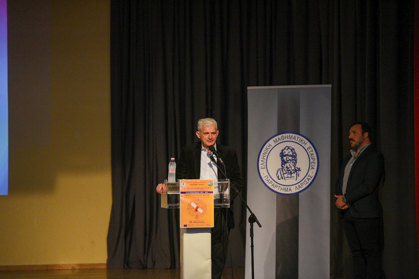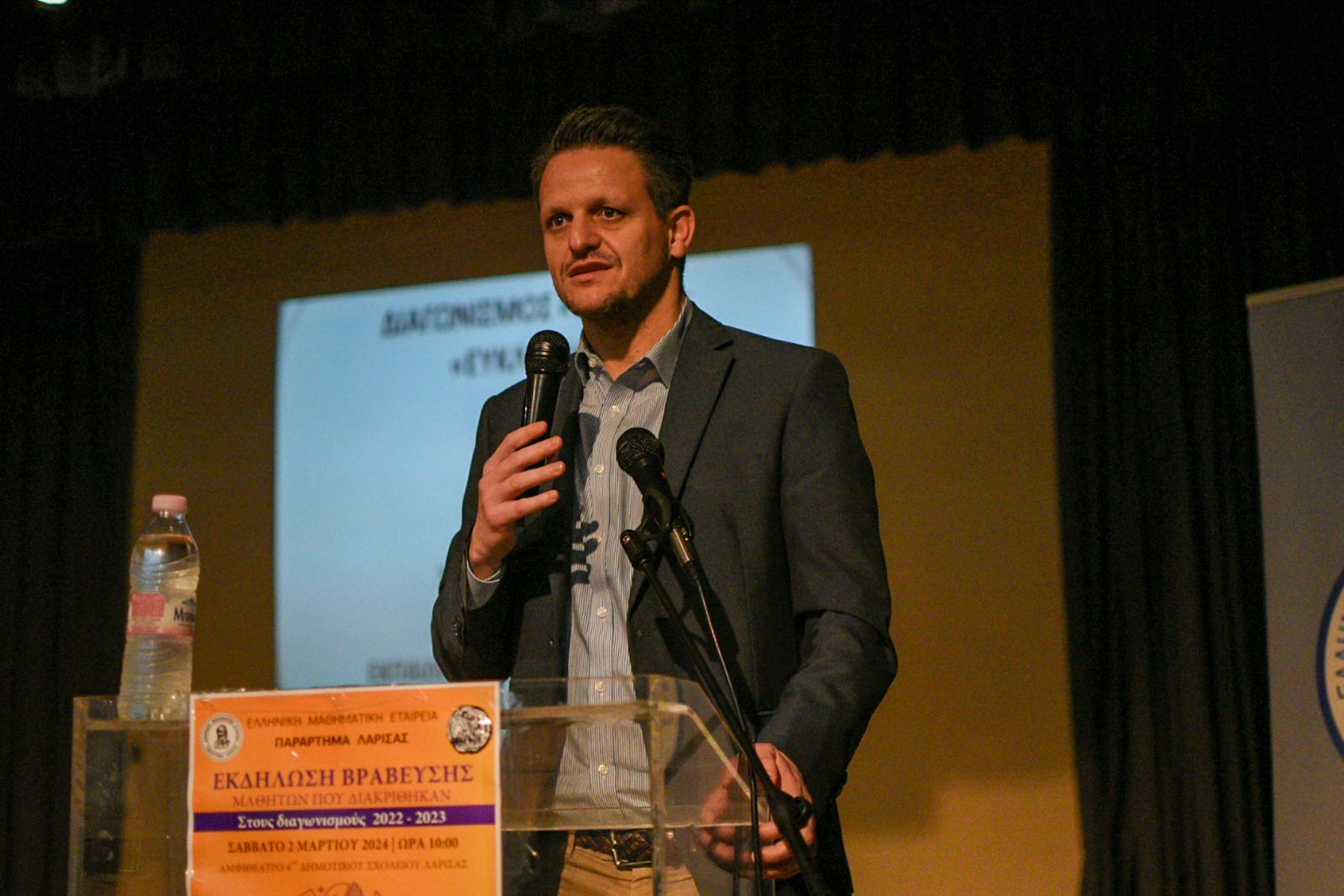 Ο αναπληρωτής διευθυντής της Δευτεροβάθμιας Εκπαίδευσης Λάρισας, κ. Νίκος Ζέρβας, δήλωσε: «Μετά την συμμετοχή των μαθητών στους διαγωνισμούς της Ελληνικής Μαθηματικής εταιρείας ήρθε η ώρα της βράβευσής τους. Βραβεύουμε σήμερα όλους όσοι συμμετείχαν από Λύκεια, Γυμνάσια και Δημοτικά (5η και 6η τάξη). Είναι χαρά μας που βραβεύουμε τους λιλιπούτειους εραστές των μαθηματικών που αξίζουν την βράβευση. Αυτή. Μια βράβευση που έχει και πολλά αντισταθμιστικά οφέλη τόσο διανοητικά όσο και ψυχικά. Συγχαίρω όλους τους μαθητές, τους γονείς που στέκονται αρωγοί και επίσης τους εκπαιδευτικούς που είναι αρωγοί και το παράρτημα της Ελληνικής Μαθηματικής Εταιρείας που διοργάνωσε την εκδήλωση».