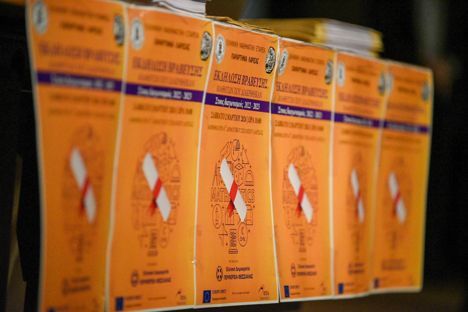 Πλημμύρισε με… μαθηματικά μυαλά η αίθουσα του 4ου Δημοτικού Σχολέιου Λάρισας σήμερα το πρωί του Σαββάτου, εκεί όπου έλαβε χώρα η καθιερωμένη ετήσια πανηγυρική τελετή βράβευσης των μαθητών του νομού Λάρισας που διακρίθηκαν στους μαθηματικούς διαγωνισμούς της Ελληνικής Μαθηματικής Εταιρείας κατά το σχολικό έτος 2022-2023.