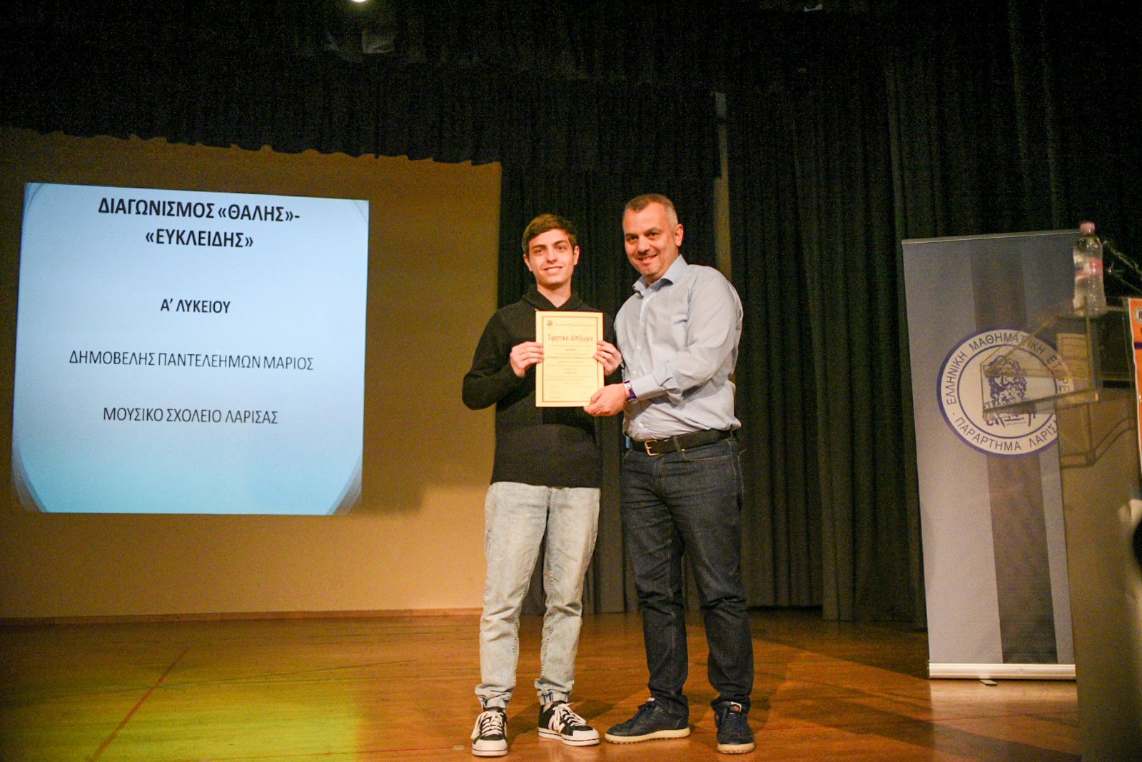 Στη μεγάλη αυτή γιορτή των Μαθηματικών παραβρέθηκαν μαθητές, εκπαιδευτικοί και κηδεμόνες. Η Ελληνική Μαθηματική Εταιρεία απένειμε τιμητικά διπλώματα στους διακριθέντες μαθητές Δημοτικών και Γυμνασίων και Λυκείων της Περιφερειακής Ενότητας Λάρισας στους διαγωνισμούς «Θαλής»-«Ευκλείδης»-«Αρχιμήδης», Μικρός Ευκλείδης «Μαθηματικά και Παιχνίδι» και «Πυθαγόρας».