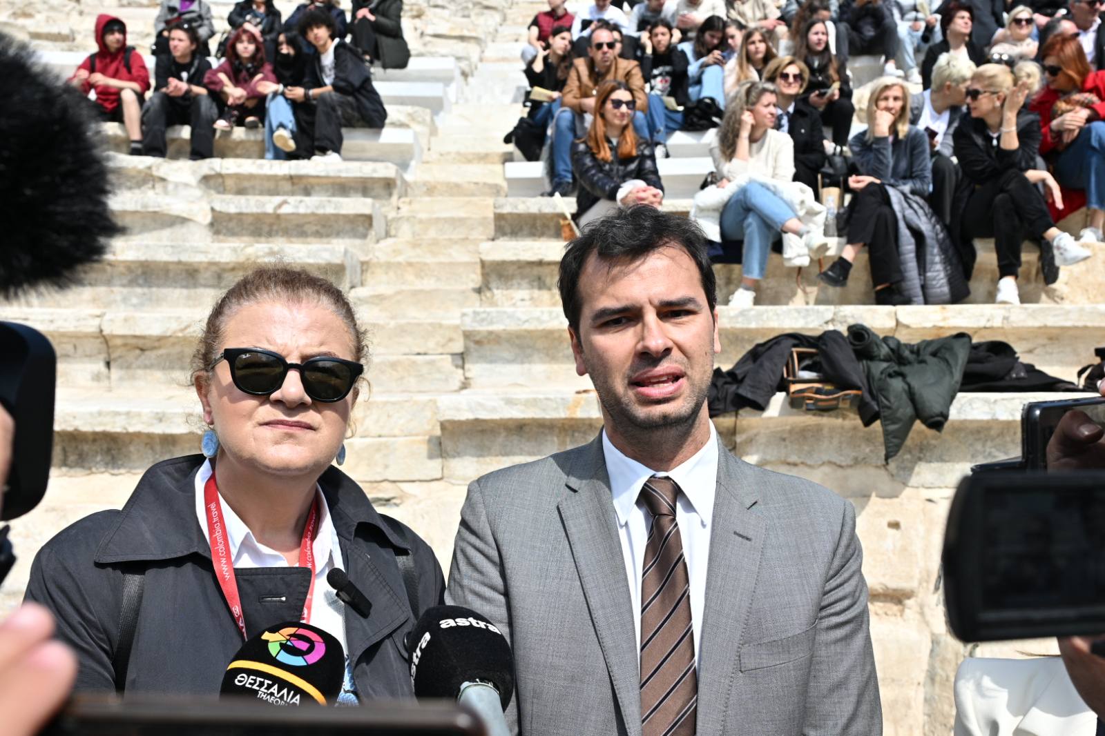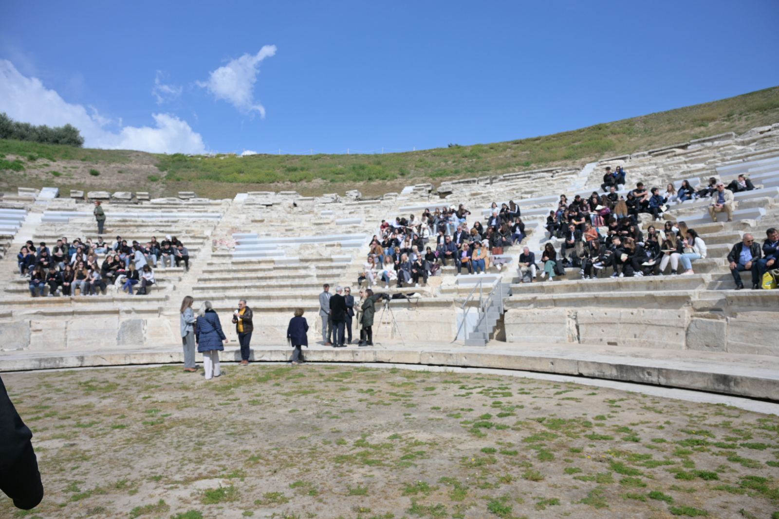 «Σήμερα στο Αρχαίο Θέατρο Λάρισας φιλοξενούμε μαθητές Λυκείων από τη Σικελία και τη Βόρεια Ιταλία, περίπου 100 παιδιά και είναι μεγάλη η χαρά, διότι αυτά τα παιδιά έχουν ετοιμάσει τμήματα παραστάσεων αρχαίας τραγωδίας και μας ζήτησαν να τα παρουσιάσουν μέσω του Θεάτρου. Ξέρουμε ότι στο Θέατρο γίνονται εργασίες, όμως αποφασίσαμε να κάνουμε μια εξαίρεση και να τους επιτρέψουμε τιμής ένεκεν, επειδή τιμούν τον ελληνικό πολιτισμό», δήλωσε η προϊσταμένη της Εφορείας Αρχαιοτήτων Λάρισας, κ. Σταυρούλα Σδρόλια.