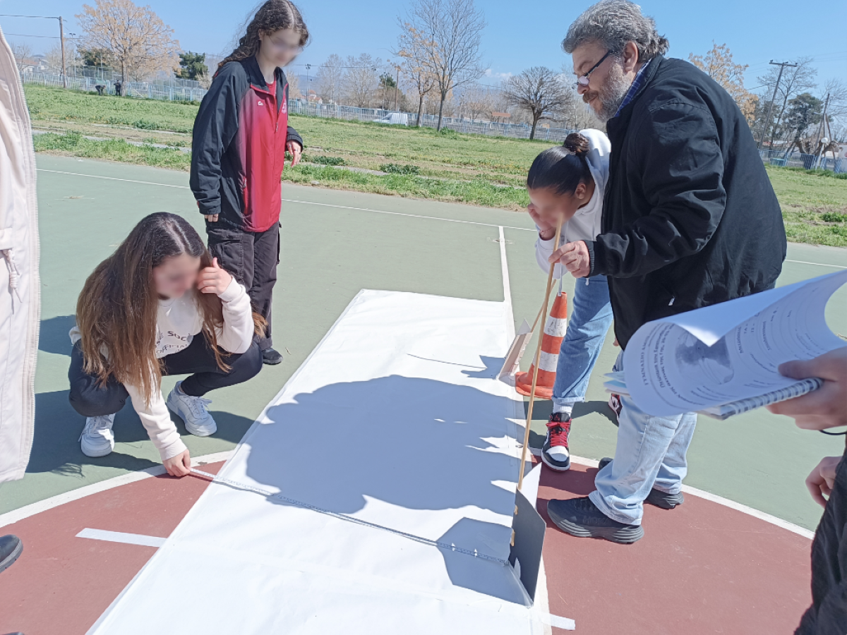 Οι μικροί μας επιστήμονες με απλά μέσα, μια μετροταινία και μία ράβδο, μέτρησαν τη σκιά της ράβδου όταν ο ήλιος ήταν στο Ζενίθ και με απλούς υπολογισμούς βρήκαν την περίμετρο και την ακτίνα της Γης με πολύ μικρό σφάλμα (0,14 %), όπως και ο Ερατοσθένης πριν από περίπου 2.250 χρόνια.