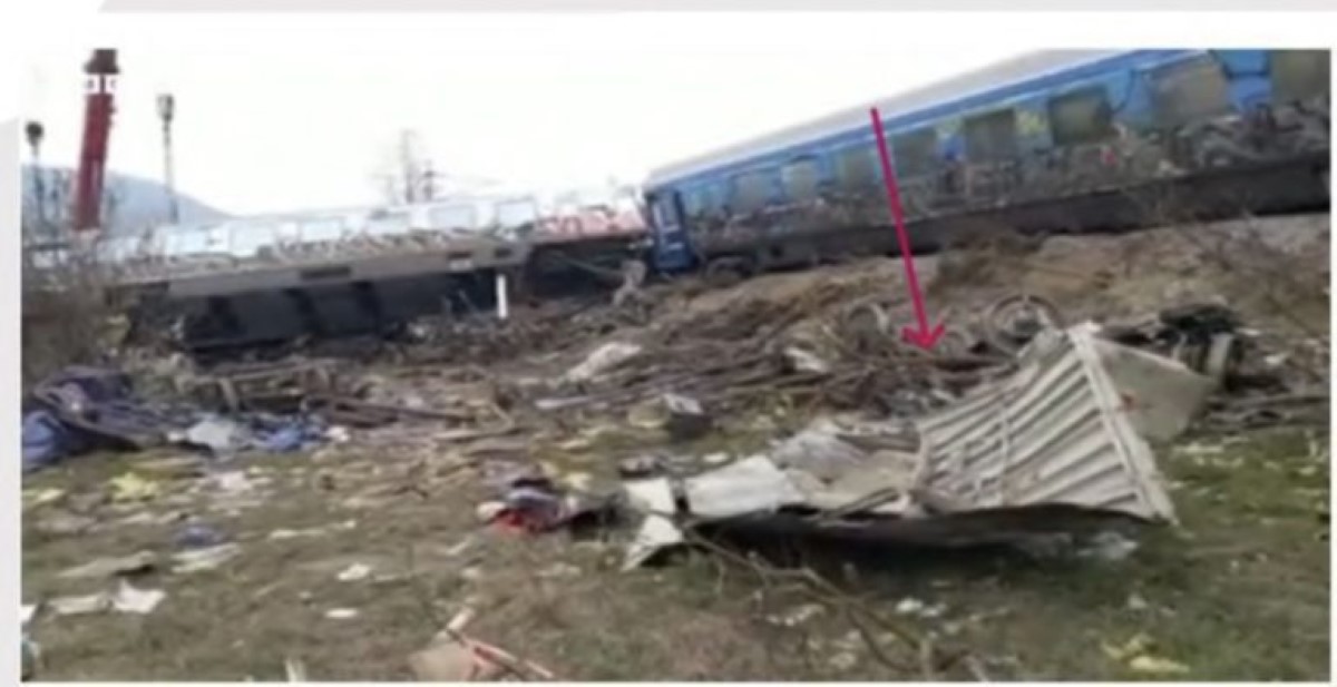 Στις φωτογραφίες φαίνονται κάποιες λαμαρίνες, λεπτές στην κατασκευή, οι οποίες «δεν προσομοιάζουν με κανένα από τα τμήματα των αμαξοστοιχιών, φαίνονται δε ανεπηρέαστα από την καύση, γεγονός που- σύμφωνα με τον κ. Κοκοτσάκη- αποδεικνύει ότι εκτινάχθηκαν στις πρώτες στιγμές της διαρροής, λόγω απότομης διόγκωσης».