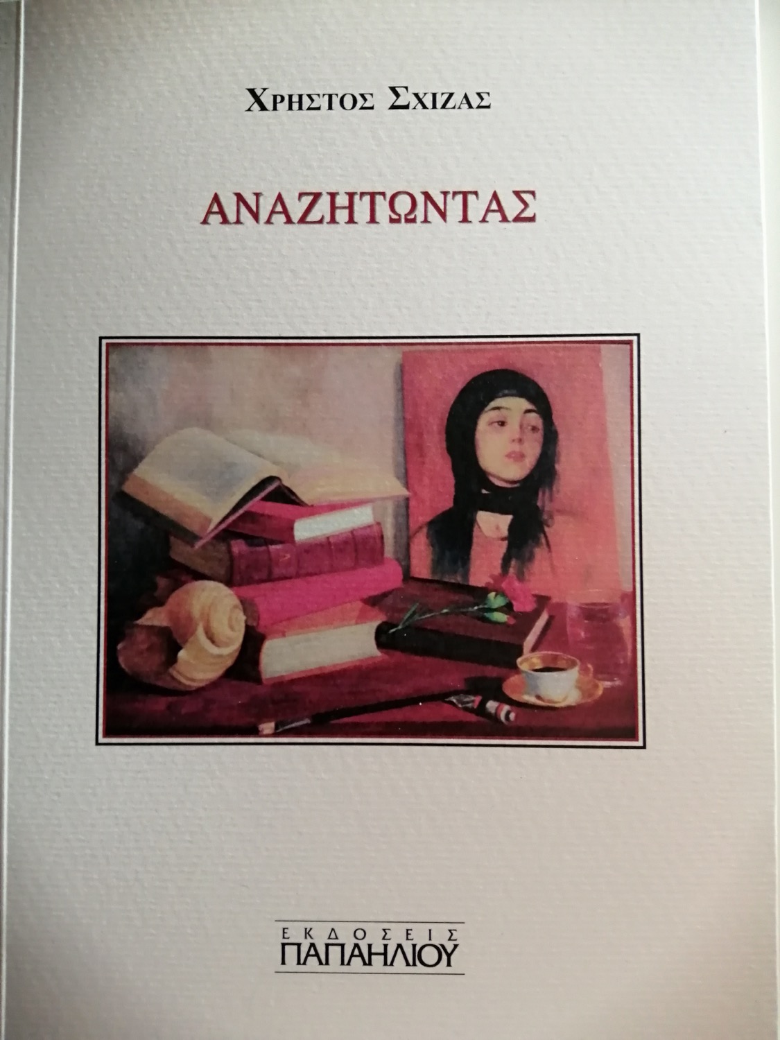 Το Πνευματικό Εργαστήρι Εκπαιδευτικών Ν. Λάρισας σε συνεργασία με την Αντιδημαρχία Πολιτισμού του Δήμου Λαρισαίων παρουσιάζει την ποιητική συλλογή του Χρήστου Σχίζα «Αναζητώντας» την Παρασκευή 17 Μαΐου στις 8:00 μ.μ. στο Χατζηγιάννειο Πνευματικό Κέντρο (Ρούζβελτ 59, Λάρισα).