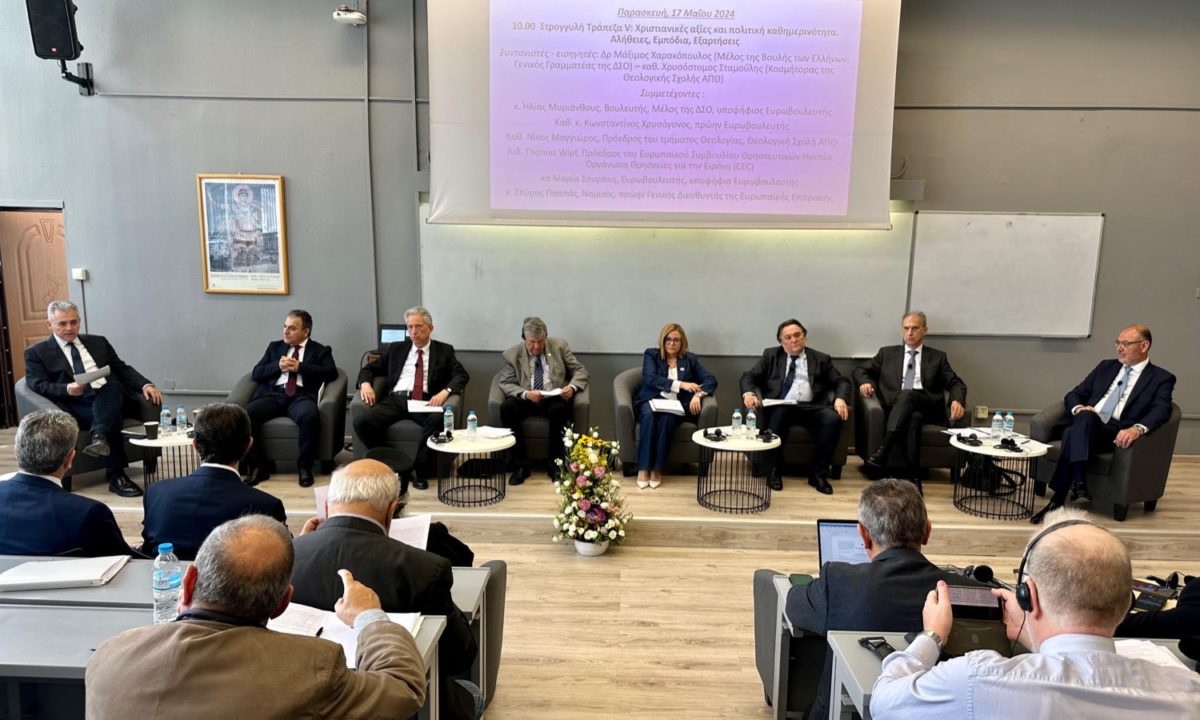 «Συχνά από τους πολέμιους των χριστιανικών αξιών, ακούγεται ο αφορισμός ότι αυτές οι αξίες είναι σκοταδισμός, αντίδραση, μεσαίωνας. Και ως εκ τούτου εκ προοιμίου καταδικαστέες. Αλλά και όποιος πολιτικός υπερασπίζεται χριστιανικές αξίες χαρακτηρίζεται οπισθοδρομικός, ή δέχεται τη μομφή ότι η στάση του εκπορεύεται από την επιθυμία του να έχει τη στήριξη της Εκκλησίας ή του ποιμνίου. Του αμφισβητείται δηλαδή το δικαίωμα να πιστεύει πράγματι τα όσα υποστηρίζει». Τα παραπάνω τόνισε ο Γενικός Γραμματέας της Διακοινοβουλευτικής Συνέλευσης Ορθοδοξίας (ΔΣΟ), Μέλος της Βουλής των Ελλήνων, δρ Μάξιμος Χαρακόπουλος, κατά την εισήγησή του ως συντονιστής στην Στρογγυλή Τράπεζα με θέμα: «Χριστιανικές αξίες και πολιτική καθημερινότητα. Αλήθειες, Εμπόδια, Εξαρτήσεις», που πραγματοποιήθηκε στο πλαίσιο του Διεθνούς Πολιτικού Συνεδρίου: «Η πολιτική ως χώρος έκφρασης των χριστιανικών αξιών στην καθημερινότητα», που πραγματοποιείται στη Θεολογικής Σχολή του ΑΠΘ.