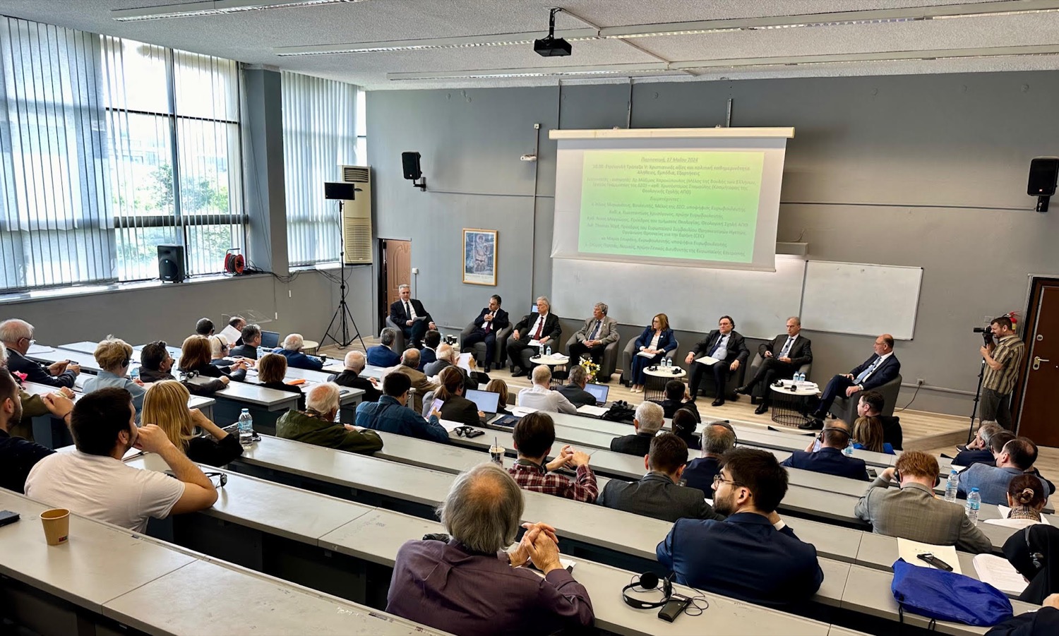 Στον συντονισμό του πάνελ, μαζί με τον κ. Μάξιμο Χαρακόπουλο, ήταν και ο Κοσμήτορας της Θεολογικής Σχολής του ΑΠΘ κ. Χρυσόστομος Σταμούλης, ενώ στη συζήτηση συμμετείχαν ο Κύπριος βουλευτής, μέλος της ΔΣΟ, υποψήφιος ευρωβουλευτής, κ. Ηλίας Μυριάνθους, η νυν, και εκ νέου υποψήφια .ευρωβουλευτής, κ. Μαρία Σπυράκη, ο π. ευρωβουλευτής, καθηγητής κ. Κωνσταντίνος Χρυσόγονος, ο πρόεδρος του τμήματος Θεολογίας της Θεολογικής Σχολής του ΑΠΘ, καθηγητής κ. Νίκος Μαγγιώρος, ο πρόεδρος του Ευρωπαϊκού Συμβουλίου Θρησκευτικών Ηγετών, Αιδεσιμώτατος Thomas Wipf, και ο π. Γενικός Διευθυντής της Ευρωπαϊκής Επιτροπής, κ. Σπύρος Παππάς.
