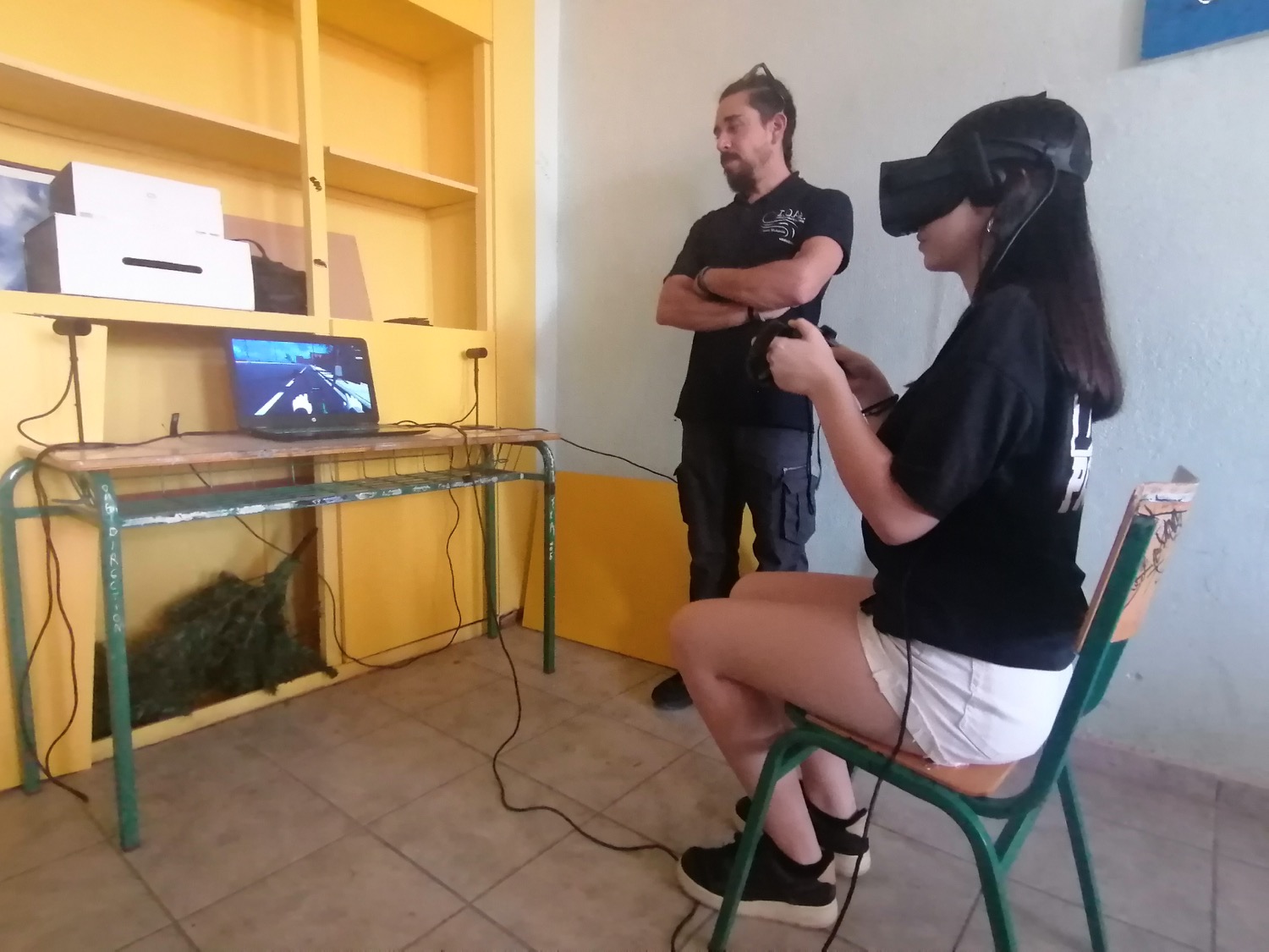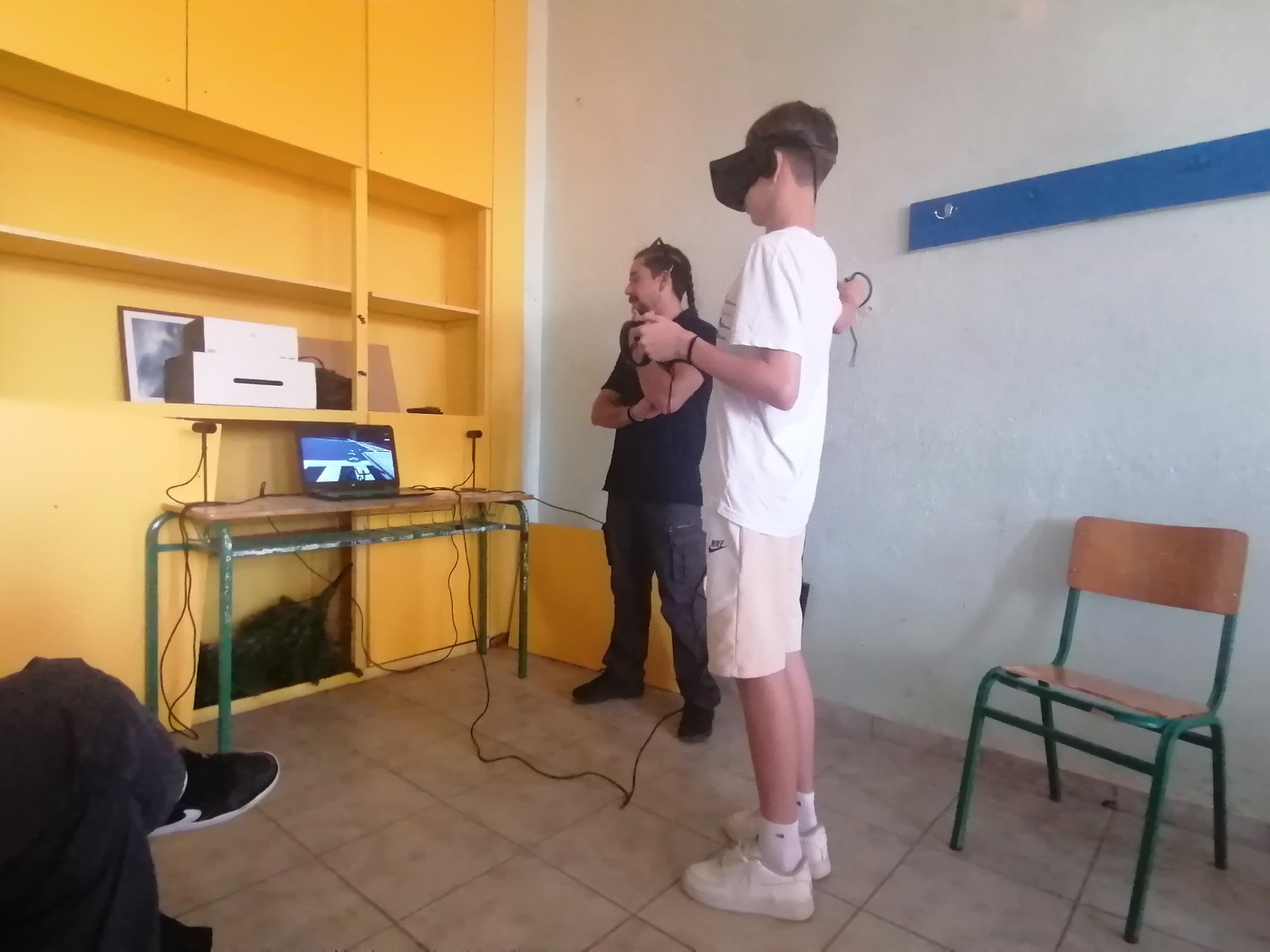 Στο βιωματικό εργαστήρι, οι μαθητές είχαν την ευκαιρία να χρησιμοποιήσουν γυαλιά εικονικής πραγματικότητας (VR), βιώνοντας ρεαλιστικές συνθήκες οδήγησης. Μέσω αυτής της τεχνολογίας, οι μαθητές μπόρεσαν να αναγνωρίσουν και να διαχειριστούν πιθανούς κινδύνους που μπορεί να αντιμετωπίσουν στους δρόμους, ενισχύοντας έτσι την επίγνωσή τους και την υπευθυνότητά τους.