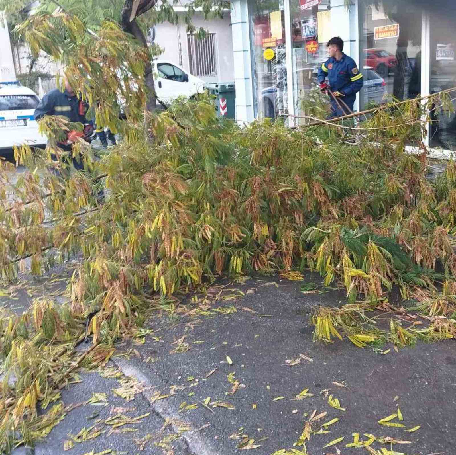 Σύμφωνα με πληροφορίες, η Πυροσβεστική έχει δεχθεί αρκετές κλήσεις για κοπές δέντρων. Μια εξ αυτών στην οδό Πολυτεχνείου.