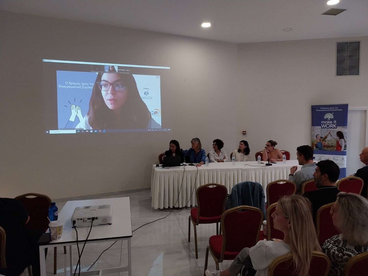 Το έργο “Make it Work: ο δρόμος προς την Επαγγελματική Συμπερίληψη” παρουσιάστηκε αναλυτικά από την project manager του Ε.Ε.Α. «Μαργαρίτα» κα Ευαγγελία – Χριστίνα Ανδρεάδη. Η κα Ανδρεάδη αναφέρθηκε λεπτομερώς στα στάδια υλοποίησης του έργου και στα αποτελέσματα που στόχο έχουν να συμβάλλουν στην θεσμοθέτηση της Υποστηριζόμενης Εργασίας στην Ελλάδα. Επίσης, έγινε παρουσίαση του Ε.Ε.Α «Μαργαρίτα» στις υπηρεσίες προσφέρει, τα εργαλεία και την υποστήριξη ώστε οι άνθρωποι με νοητική υστέρηση να έχουν τη δυνατότητα να ζήσουν με τη μεγαλύτερη δυνατή πληρότητα τη ζωή τους.