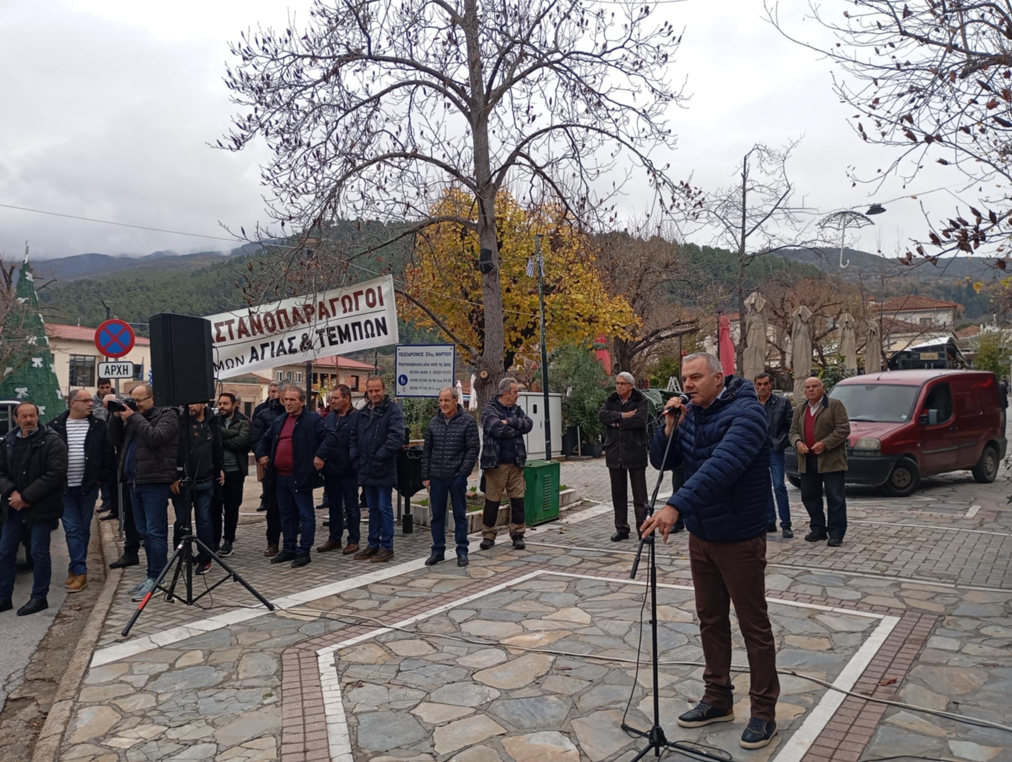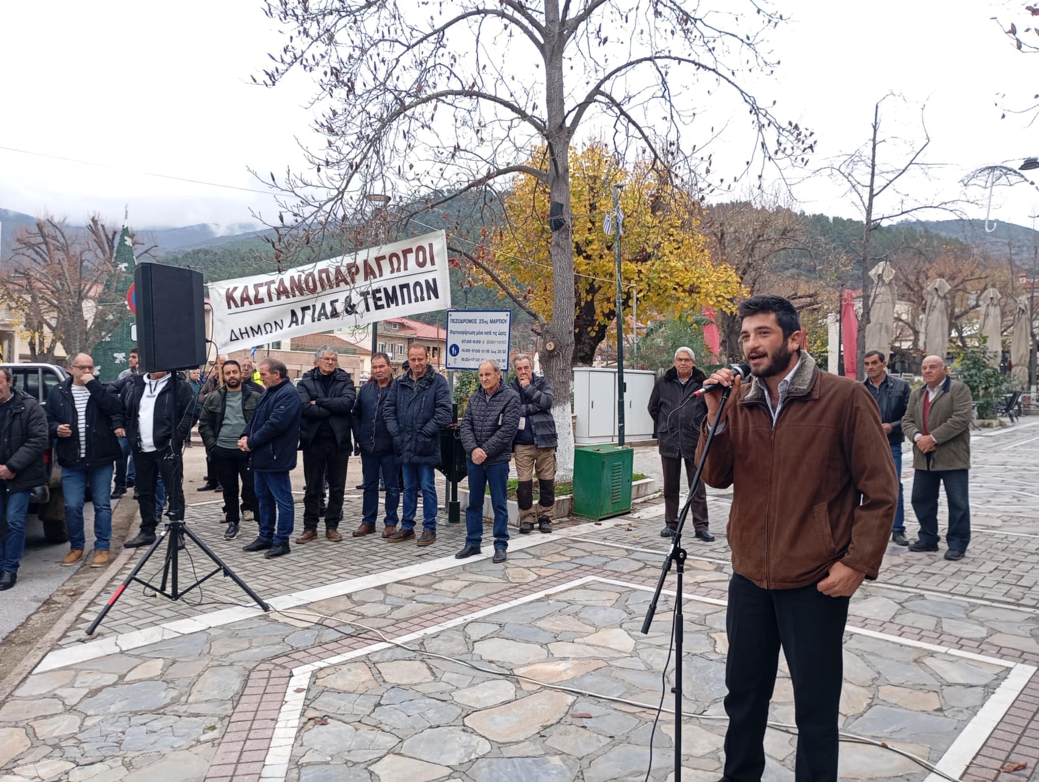 Συλλαλητήριο με τρακτέρ και αγροτικά αυτοκίνητα έλαβε χώρα την Τετάρτη στην κεντρική πλατεία της Αγιάς, από μηλοπαραγωγούς και καστανοπαραγωγούς της περιοχής.