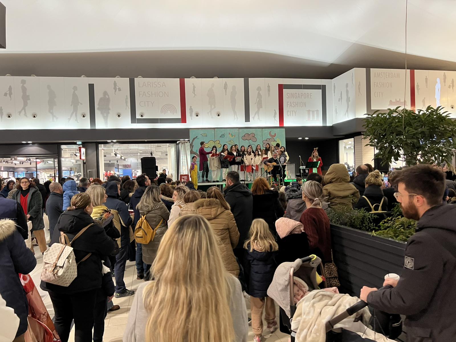 Το πνεύμα των Χριστουγέννων ενίσχυσε με τις μουσικές της η μπάντα “ΓΑΛΙΛΑΙΑ” της ενοριακής συντροφιάς του μεγαλομάρτυρος Αγίου Γεωργίου Λαρίσης, που πλημμύρισε με νότες της υπέροχα διακοσμημένους χώρους του μεγάλύτερου εμπορικού κέντρου της Θεσσαλίας.