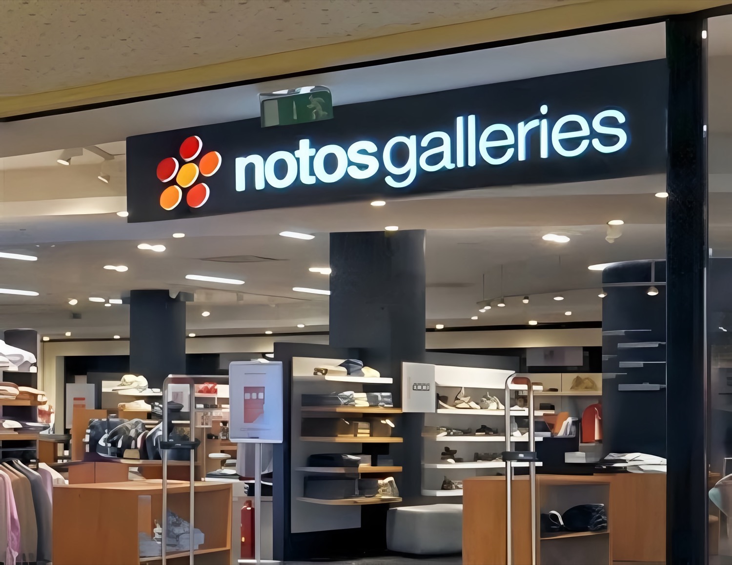 Το ίδιο συνέβη και με το δεύτερο μεγάλο πολυκατάστημα στην πόλη, τα Notos Galleries που επιχειρηματικά ήταν διάδοχο σχήμα του Λαμπρόπουλου. (Το 2001 το κατάστημα μετονομάστηκε σε “Notos Galleries Λαμπρόπουλος” και δημιουργήθηκε ο όμιλος “Notos Com” από τη συγχώνευση των πολυκαταστημάτων Αφοί Λαμπρόπουλοι, των καλλυντικών CAP Cosmetics, της Παπαέλληνας Καταναλωτικά και της Παπαέλληνας Συμμετοχική, καθώς και των εταιρειών ένδυσης “Σπόρτσμαν”, “Αταλάντη”, “Αταλάντα” και “Ένδυση”). Στη Λάρισα στεγάστηκε για κάποια χρόνια επί της Κούμα, εκεί που σήμερα βρίσκεται το κατάστημα ρούχων H&M και στο παρελθόν το σχολείο του Μπόκαρη.