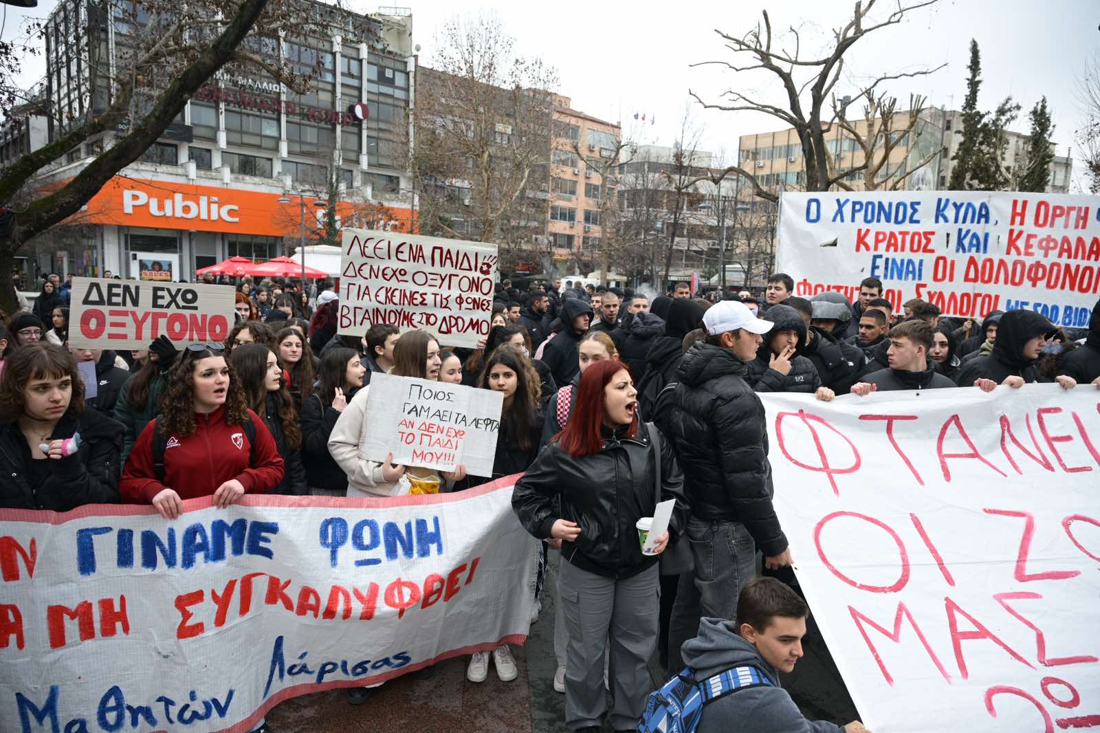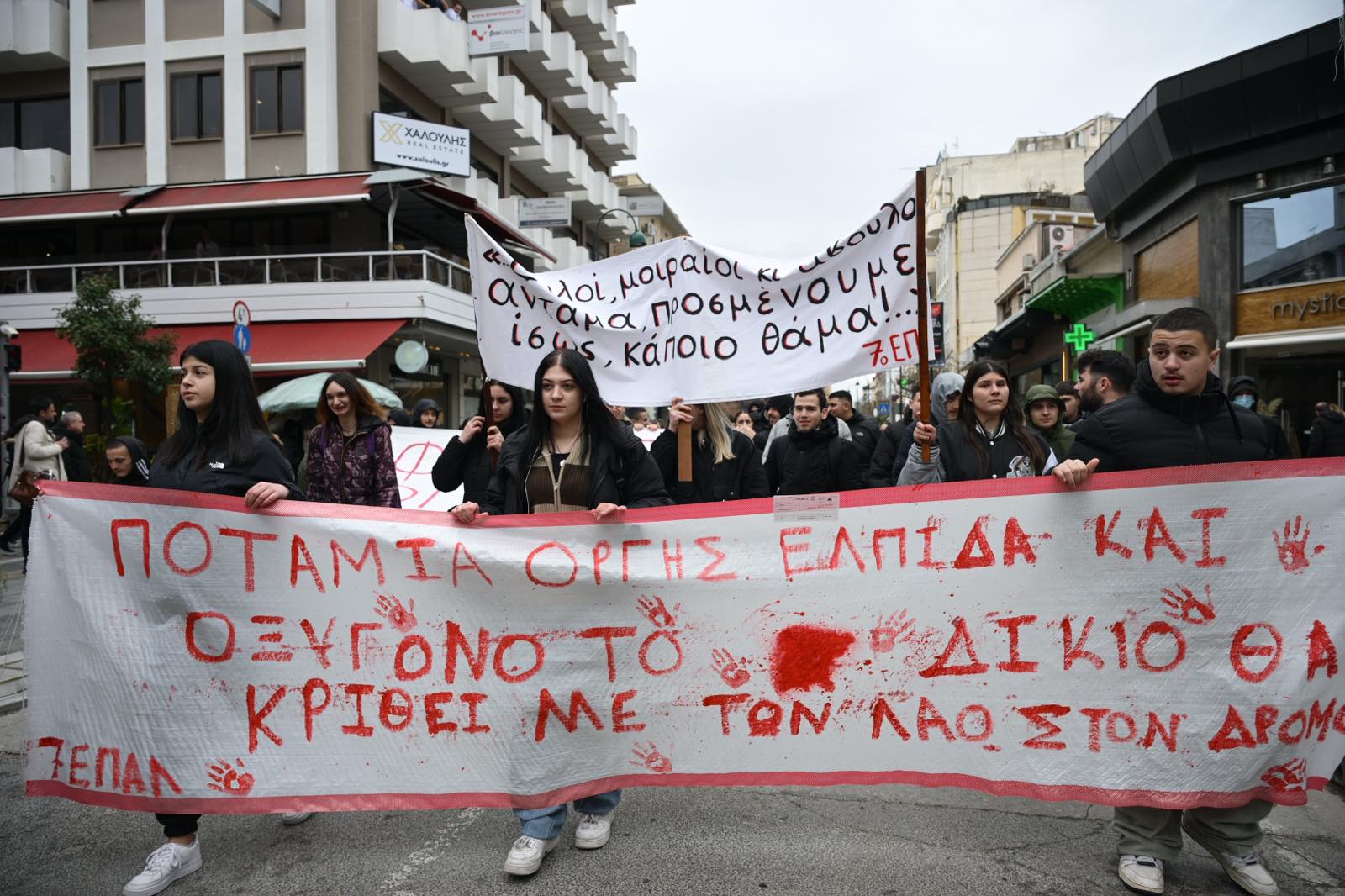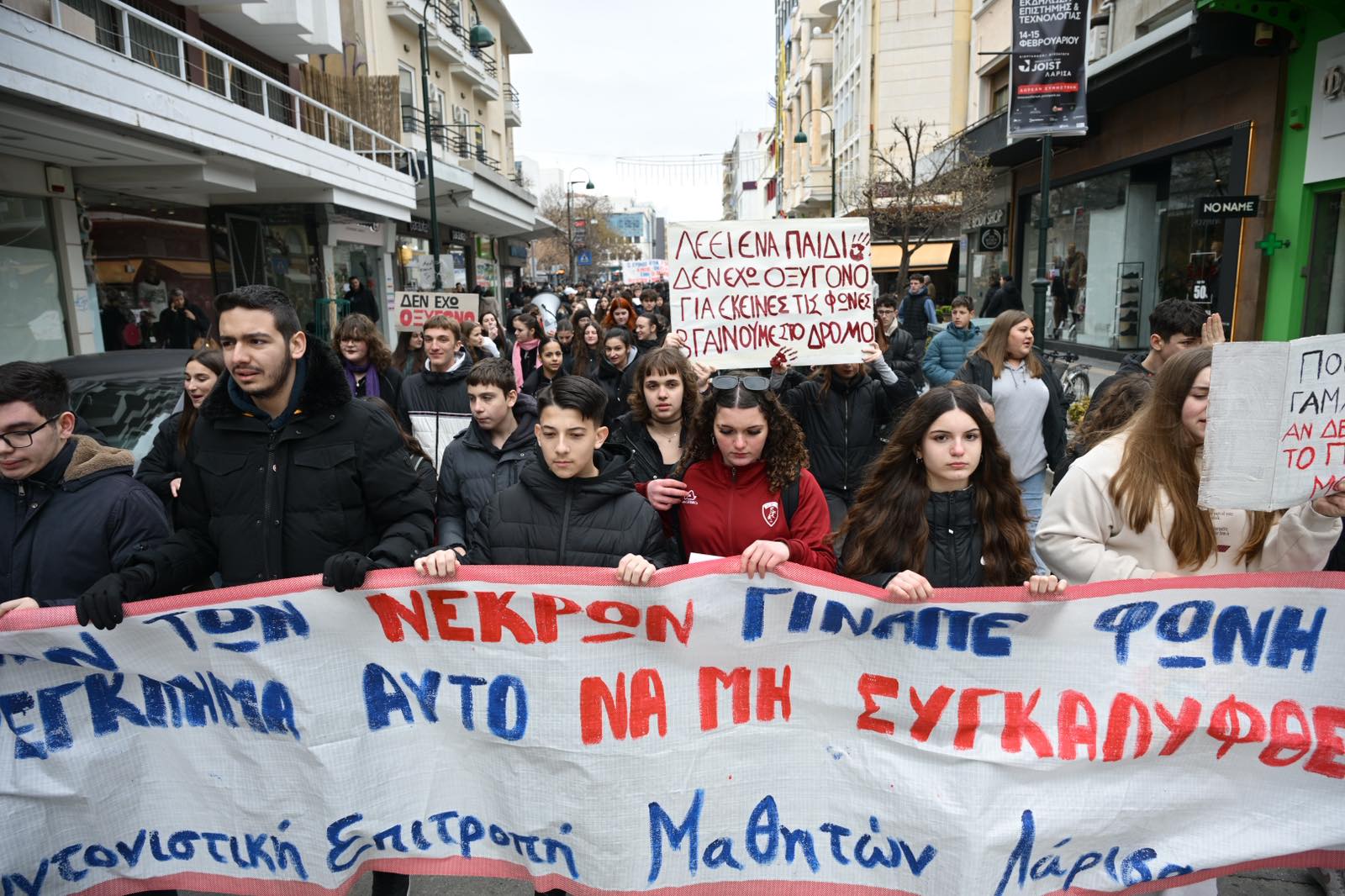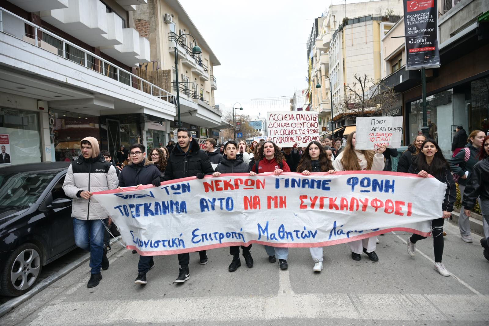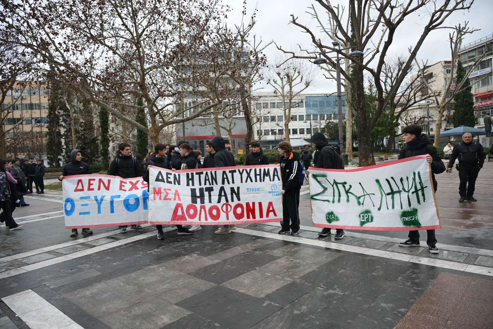 Λάρισα: Μαθητές και φοιτητές διαμαρτυρήθηκαν για την τραγωδία των Τεμπών: “Δικαίωση για τις ψυχές των παιδιών” (φωτο – βίντεο)